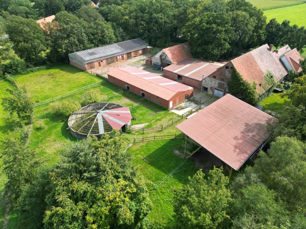 Auf einem Grundstück von ca. 11032 m² , einer Wohnfläche von ca. 290 m² und einer Nutzfläche von ca. 2900 m² mit Stallungen, viele Nutzflächen etc....