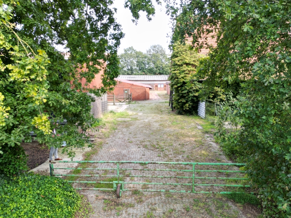 Es gibt 2 Zufahrten um hinten auf den Hof zu kommen.