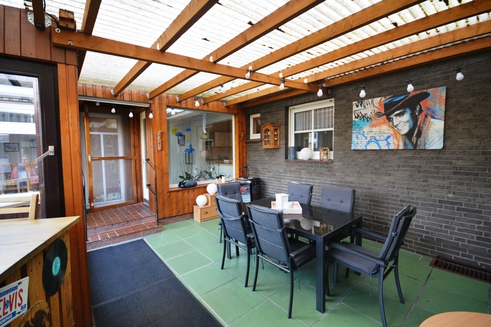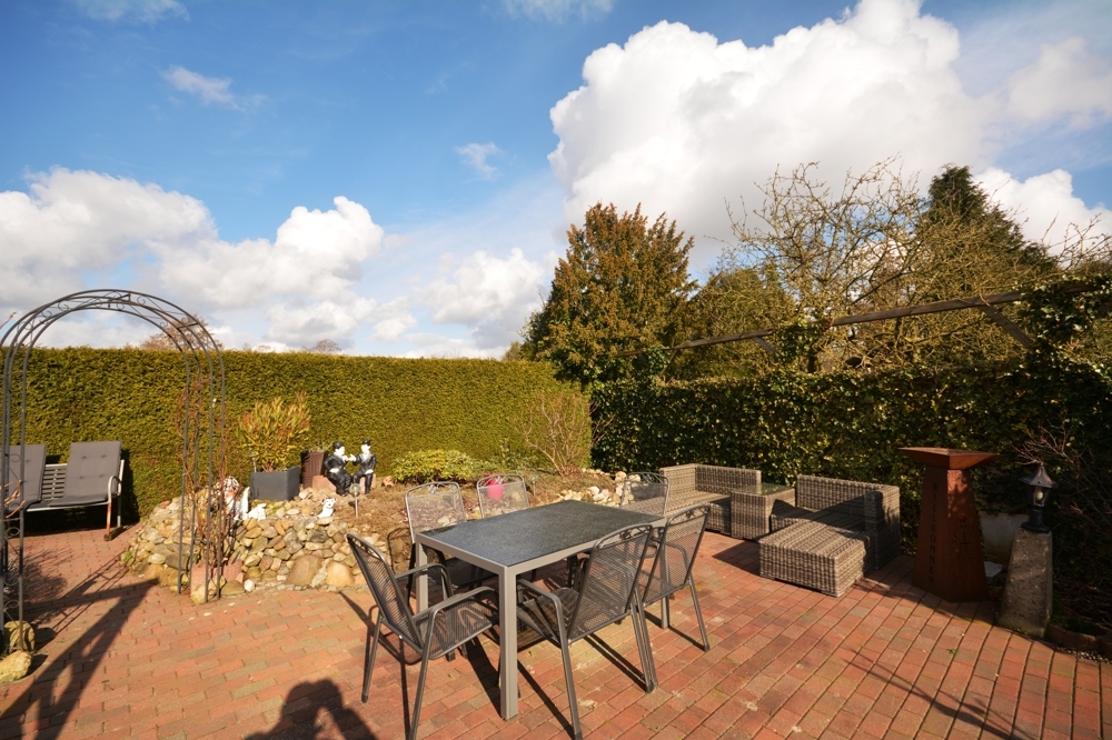 Der Außenbereich bietet den Garten, eine Garage mit vorstehendem Carport und Hauswirtschaftsraum und die Terrasse.