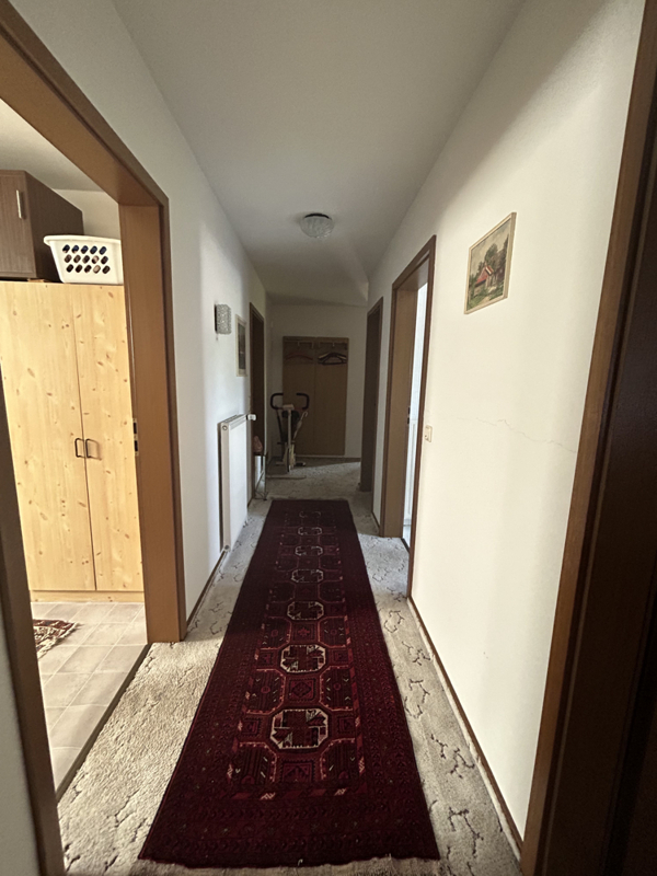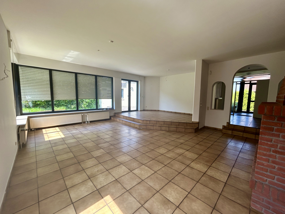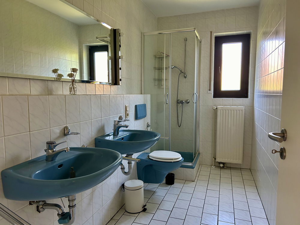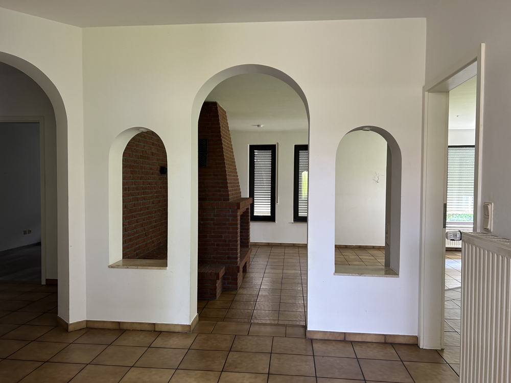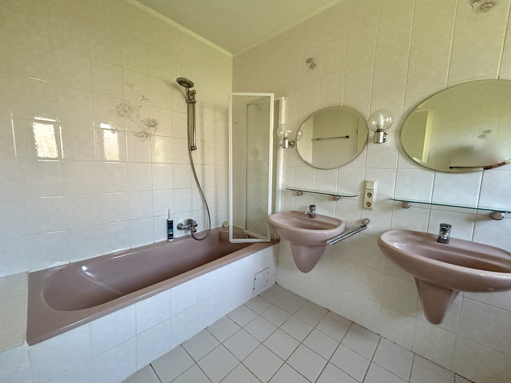 Betreten Sie die Erdgeschosswohnung durch einen aparten Eingangsbereich, der Sie direkt in das beeindruckende Wohn- und Esszimmer führt. Dieses Zimmer besticht durch eine rustikal verklinkerte Kaminwand mit einem Gaskamin und eine helle, freundliche Atmosphäre. Von hier aus gelangen Sie zur Terrasse, sowohl durch das Wohn- und Esszimmer als auch von der Küche aus. Die Wohnung bietet vier Schlafzimmer, zwei Bäder mit jeweils zwei Waschbecken – eines davon ist ausschließlich vom Hauptschlafzimmer aus zugänglich – und ein Gäste-WC. Eine neue Therme wurde Ende 2020 installiert.