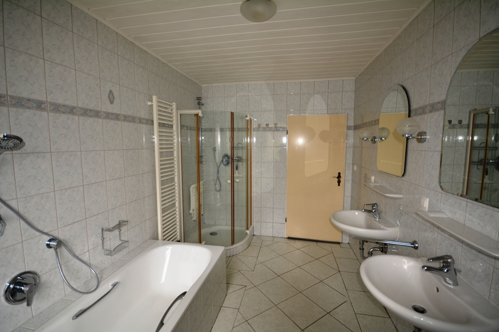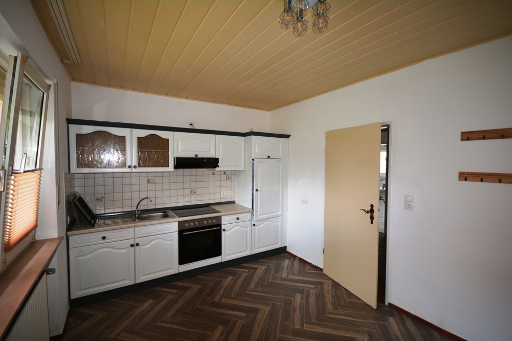 Wohnzimmer, Küche mit EBK , Esszimmer mit Zugang Terrasse, Schlafzimmer, Bad mit Dusche und Wanne, Heizungsraum, Flur.