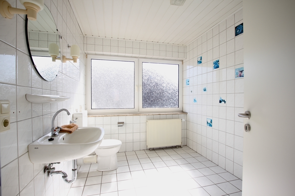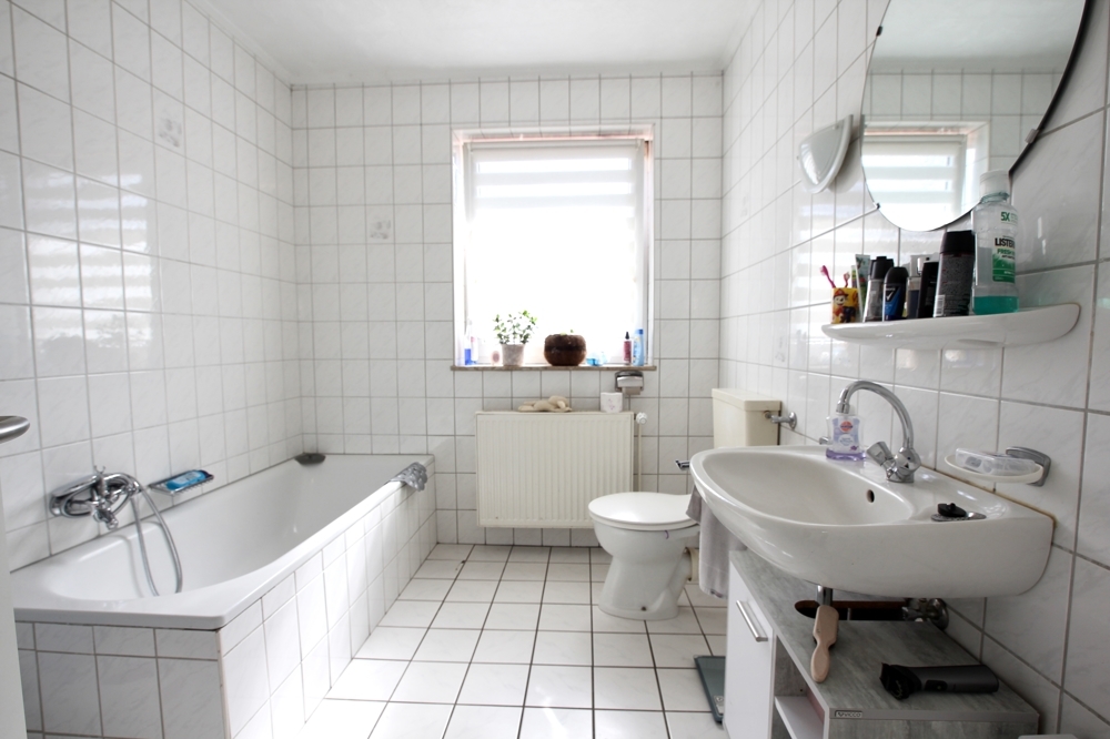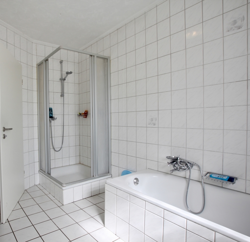 Jede der beiden Erdgeschosswohnungen ist mit einer Badewanne und Dusche ausgestattet. Zu diesen Wohnungen gehören außerdem eine Terrasse und ein Carport-Stellplatz.