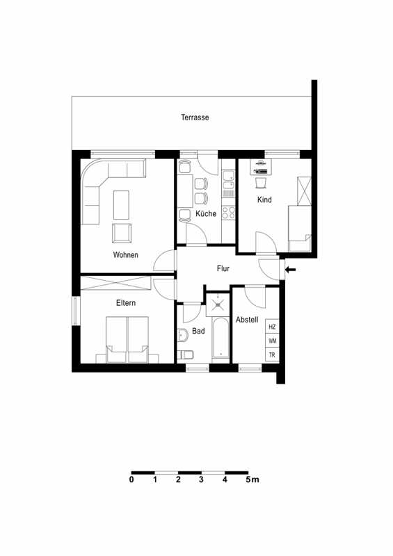 Die Dachgeschosswohnung bietet ebenfalls einen Stellplatz.