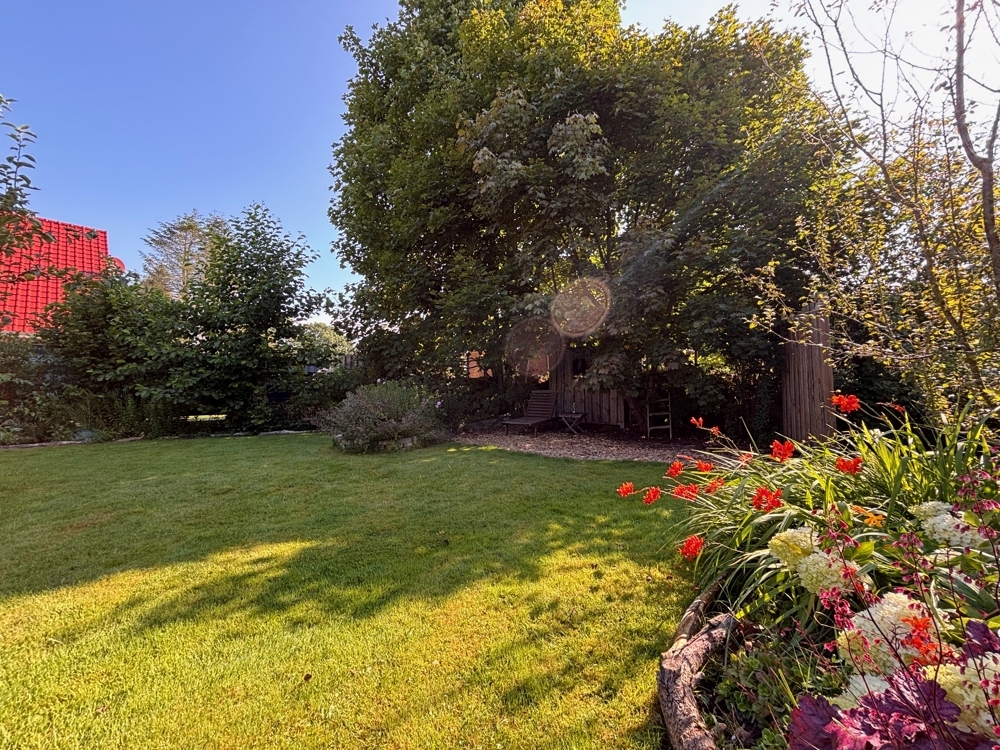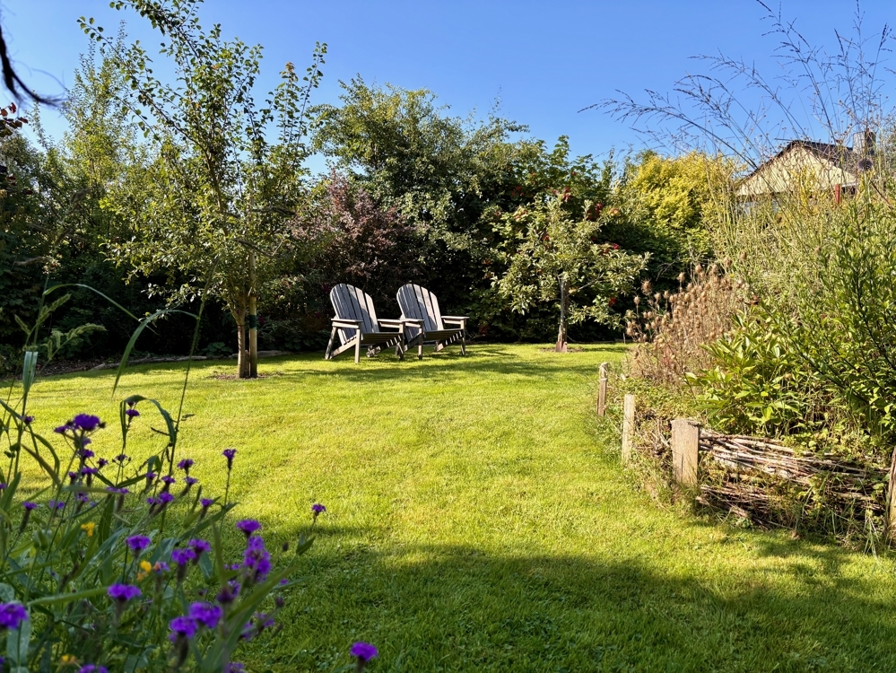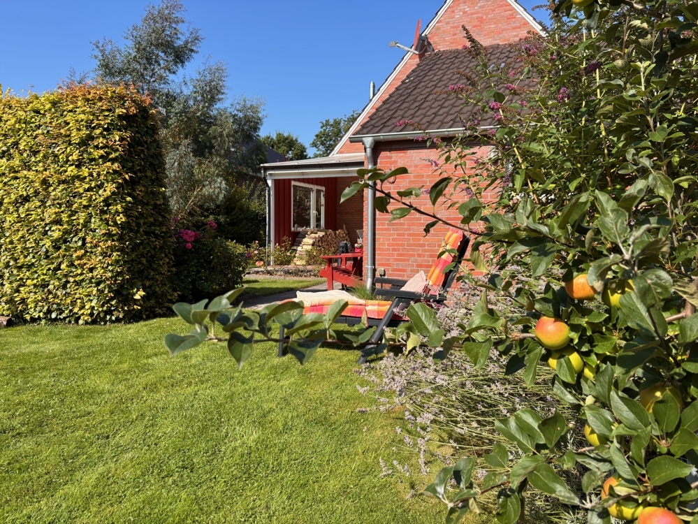 - Nicht einsehbarer Garten: Idyllische Privatsphäre mit Obstbäumen und Beerensträuchern.