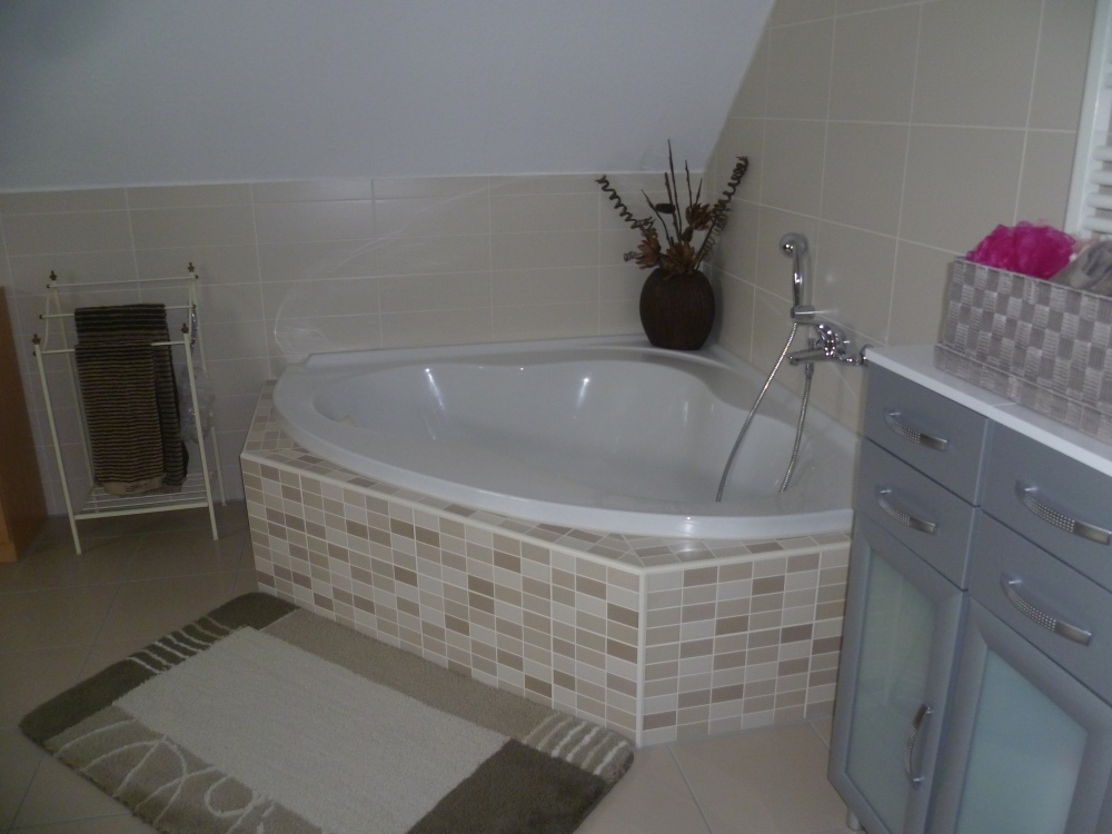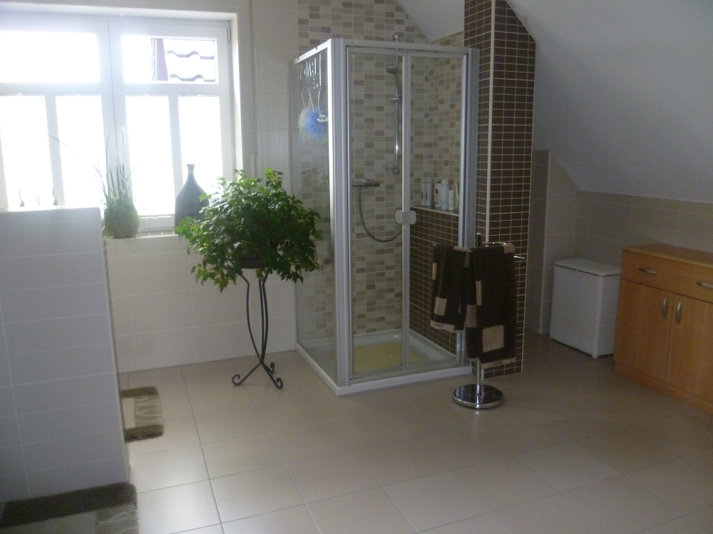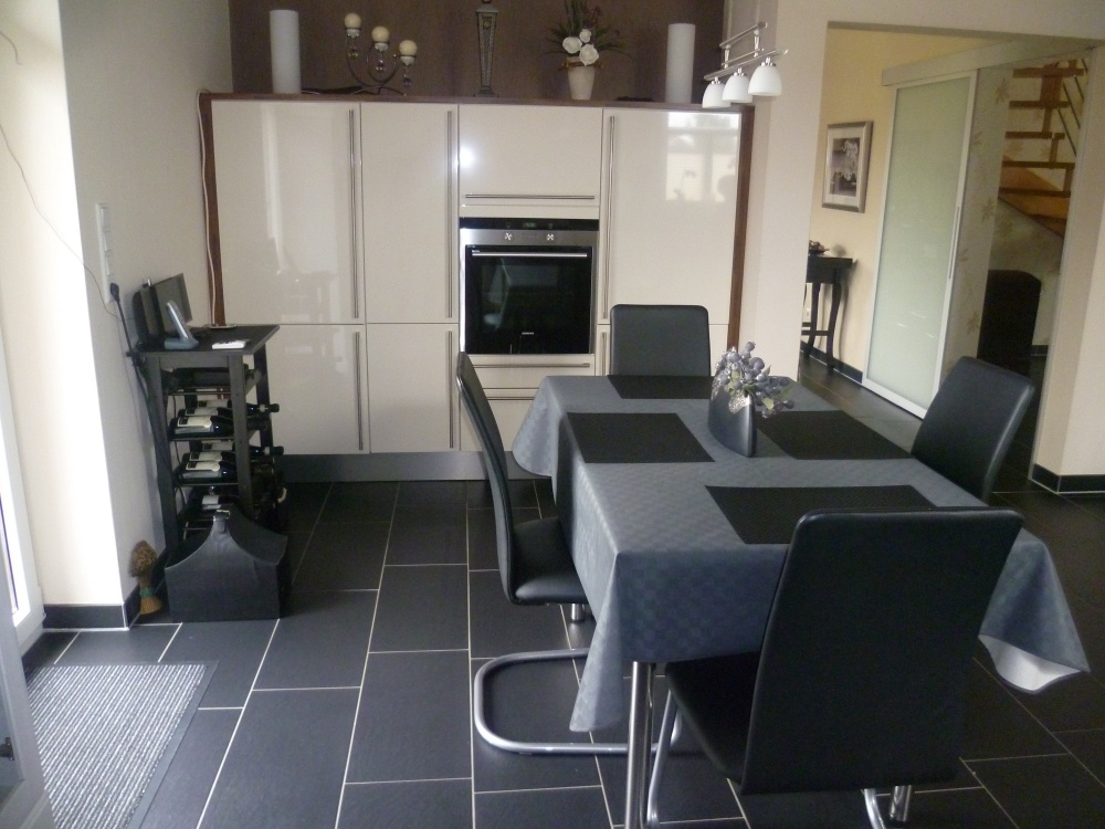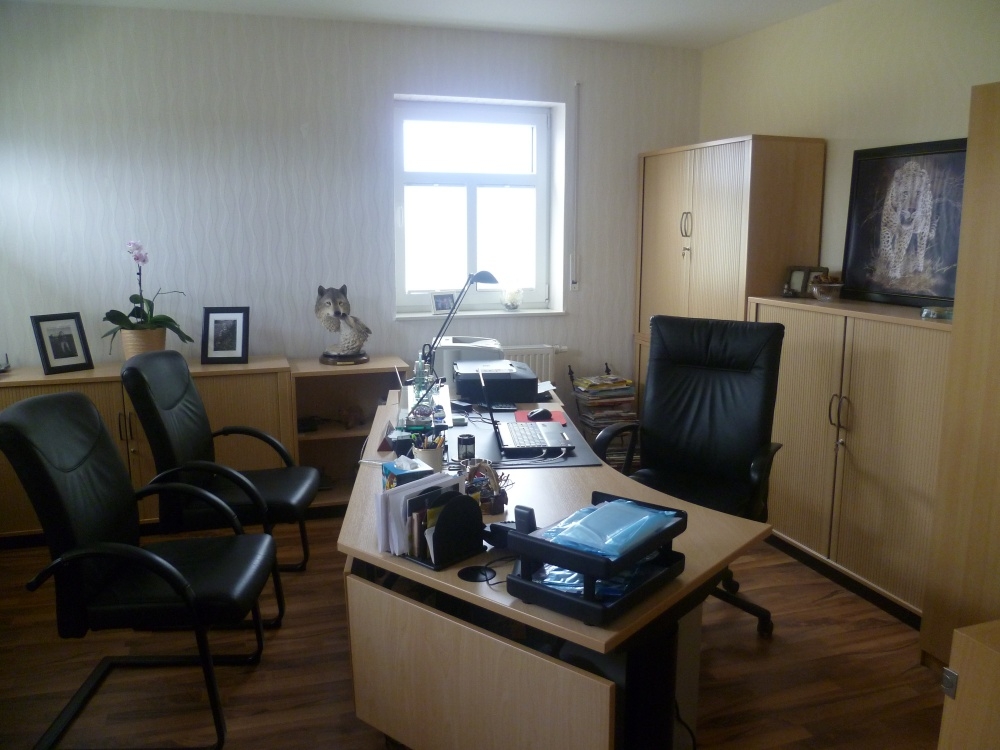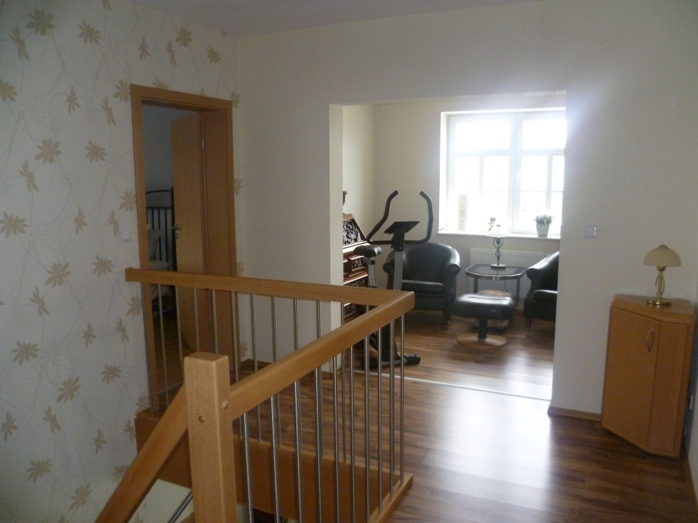 Raumaufteilung Erdgeschoss: Wohn- u. Esszimmer, Büro, Gäste-WC, Flur, Küche mit EBK, Garage, Hauswirtschaftsraum Bad mit Dusche, Terrasse. Über die Holztreppe gelangen Sie in das Obergeschoss mit den 3 Schlafzimmern, dem großem Bad mit Dusche und Eckwanne und einem Abstellraum. Der Spitzboden sorgt für ausreichend Stauraum.