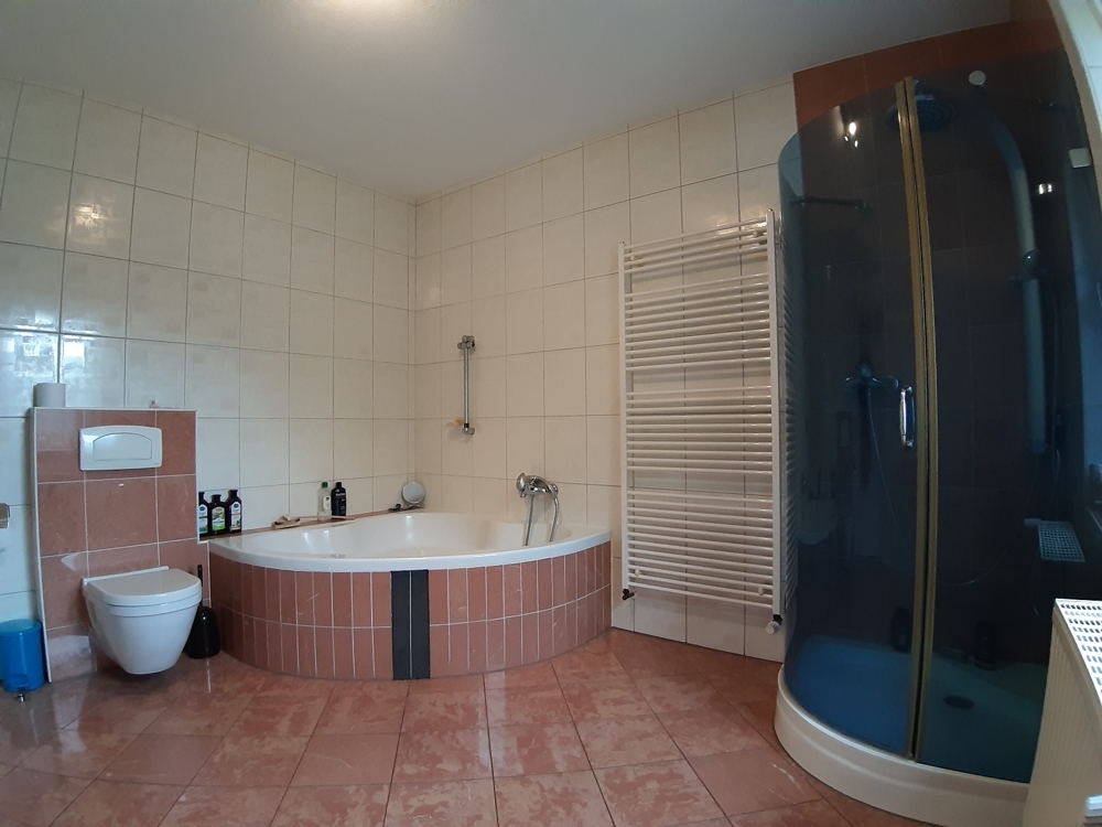 - Fußbodenheizung im Bad, Küche und teilweise im Wohnzimmer vorhanden- Fußbodenbeläge: Mediterrane Fliesen u. Laminat
