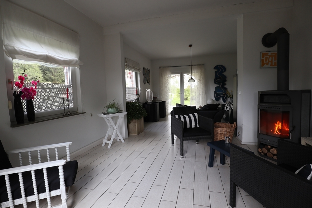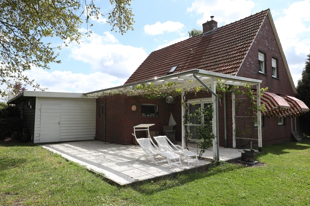 In traumhaft ruhiger und ländlicher Lage von Burlage steht dieses freistehende Einfamilienhaus in einem riesigen Garten. Die Immobilie wurde bisher als Ferienhaus genutzt und wird daher komplett möbliert verkauft. Das Haus teilt sich in folgenden Räumen auf:Erdgeschoss: