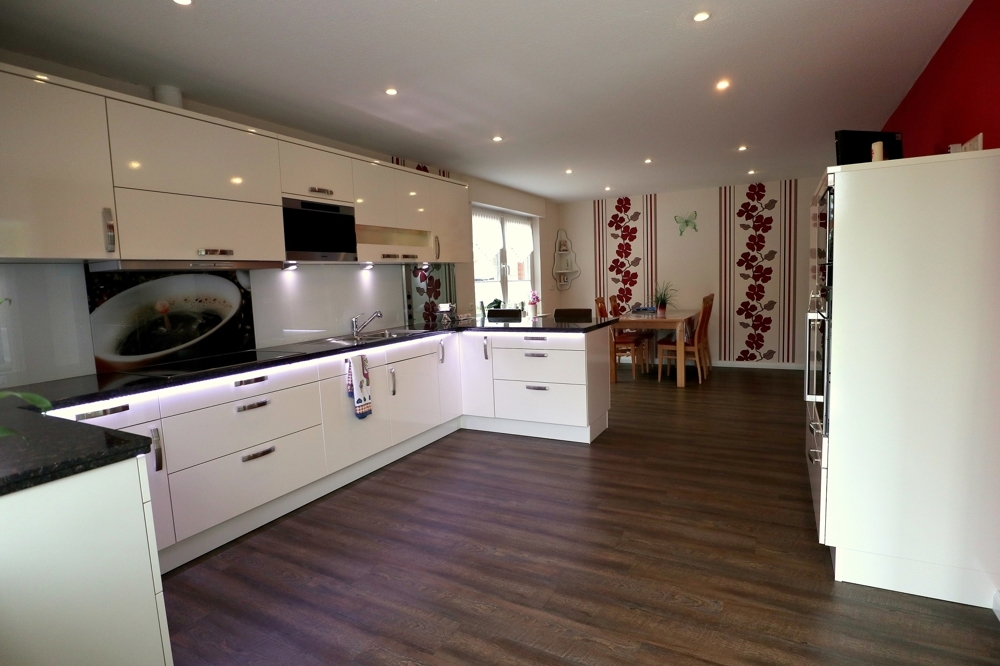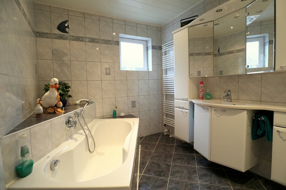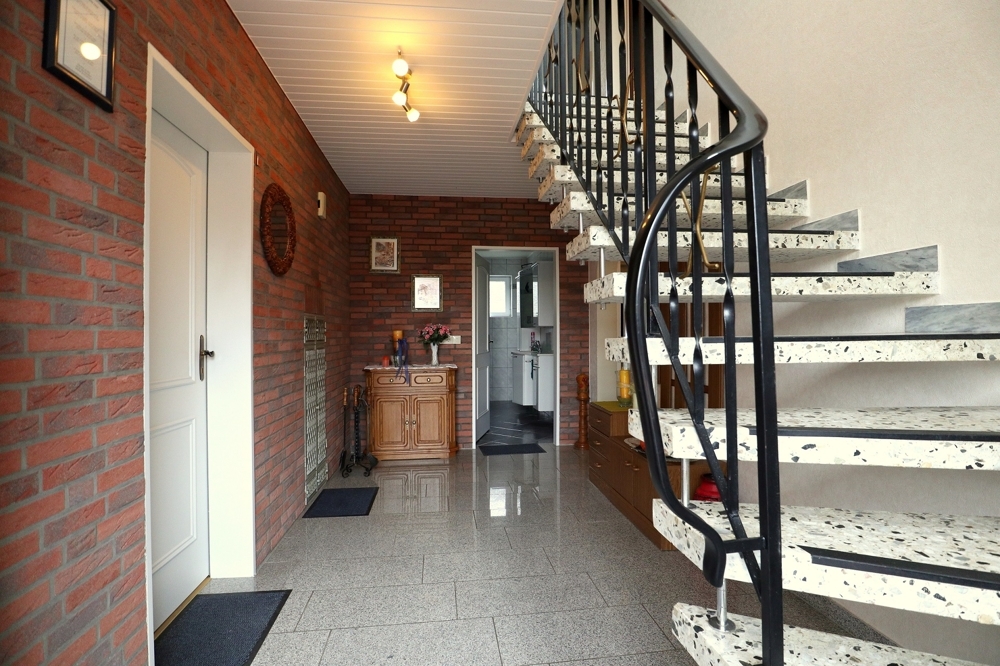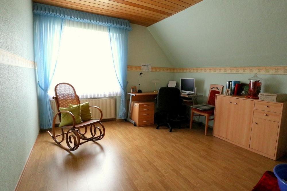 In absoluter Nähe zum Kindergarten und Grundschule befindet sich dieses familienfreundliche Einfamilienhaus mit großzügiger Wohn- und Nutzfläche. Das Wohnhaus, erbaut 1977, wurde 2012 nicht nur vergrößert, sondern komplett renoviert. Es wurde die Hohlschicht gedämmt, neue Fenster und Außentüren angebracht, eine neue Küche eingebaut sowie die Fußbodenbeläge erneuert und tlw. mit einer Fußbodenerwärmung versehen. Das Haus teilt sich in folgenden Räumen auf:Erdgeschoss:
