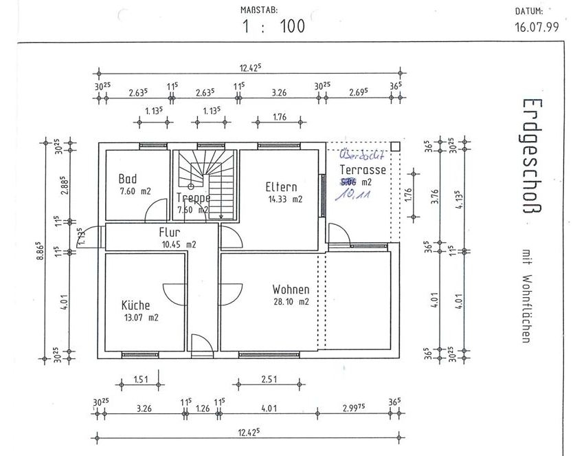 - Terrasse: 10,12 m² (überdacht/5,06 m²)