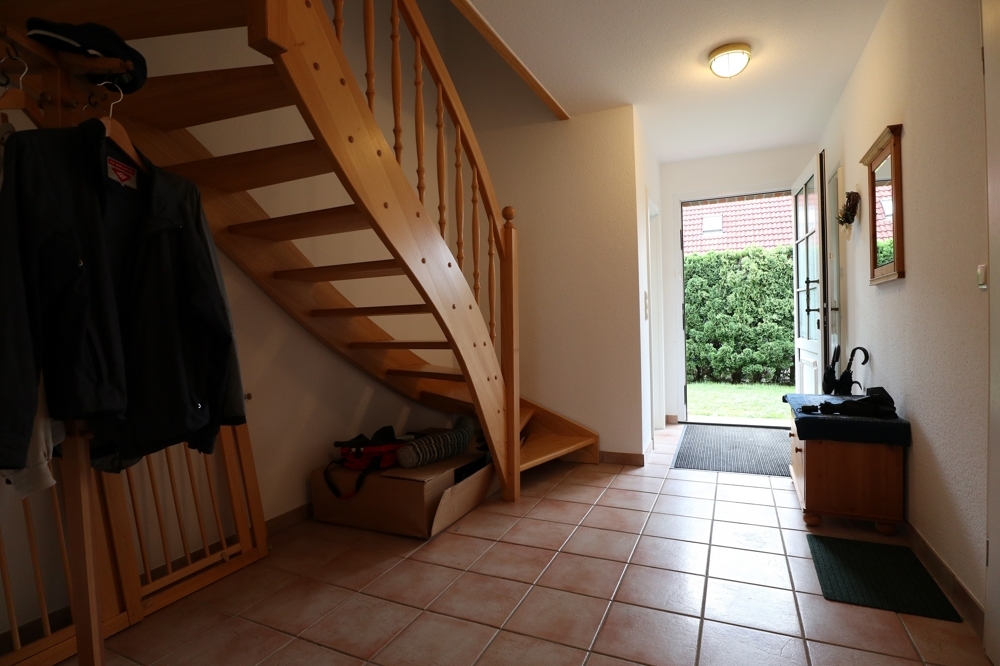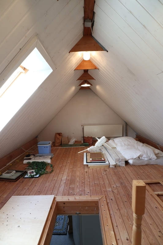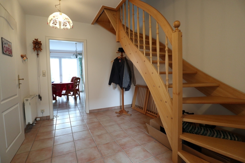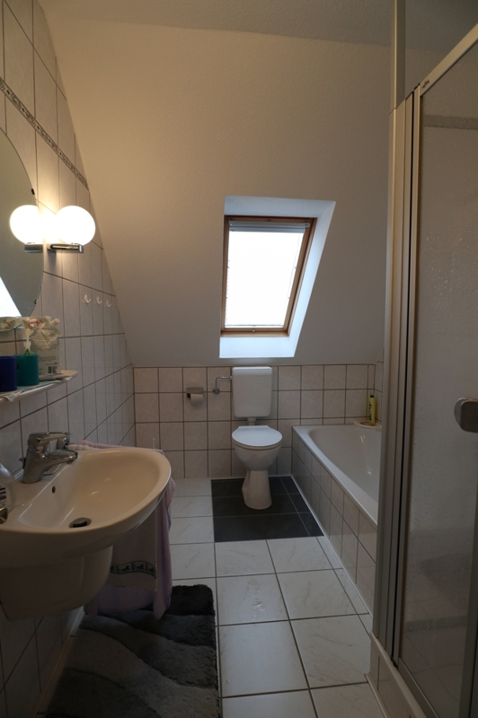 Der Dachboden ist komplett ausgebaut und hat eine Stehhöhe von mittig 2,40 m. Das Dach wurde 2003 zusätzlich mit Steinwolle nachgedämmt.
