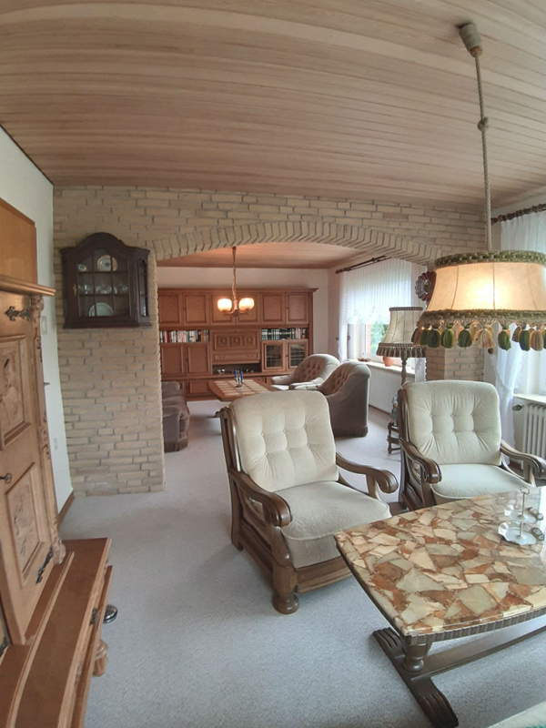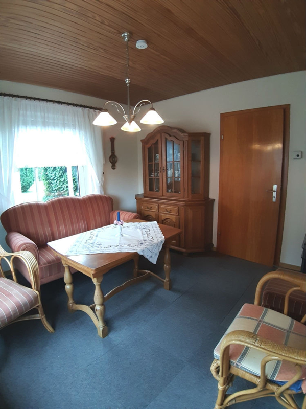Das Haus ist in einem gepflegten Zustand. Es befindet sich ein großer Keller im Haus. Zusätzlich wurde 1986 eine massive Garage angebaut. Ein Hobbyraum/Abstellraum befindet sich nach hinten raus in einem backhausähnlichen Anbau. Bis auf kleine Renovierungsarbeiten kann die Immobilie sofort bezogen werden.Erdgeschoss: