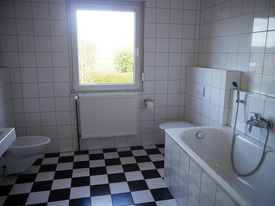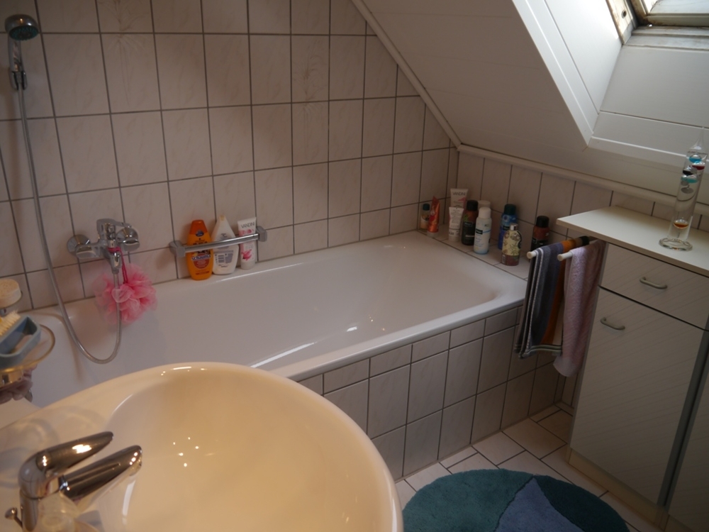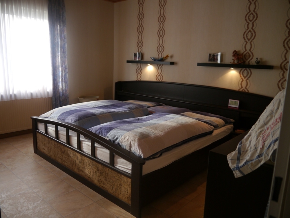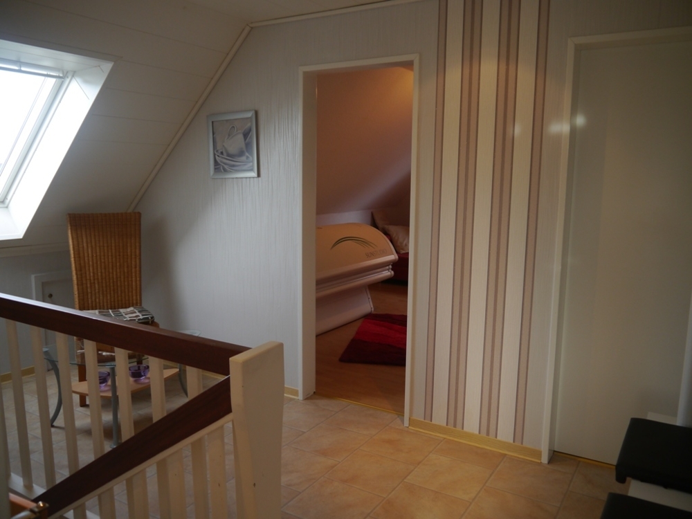 Auch die Innentüren (weiß) im gesamten Erd- u. Obergeschoss wurden erst 2015 ausgetauscht, ebenso das Dachfenster (Velux) im Flur des Obergeschosses, allerdings in 2019. Im ebenfalls neu renovierten Obergeschoss befinden sich drei großflächige Schlafzimmer, eines davon mit Zugang zur Loggia, bei der das komplette Geländer im letzten Jahr erneuert wurde, sowie ein Bad mit Waschtisch, Badewanne und WC. Der Gartenbereich mit seiner eindrucksvollen Teichlandschaft wurde zwischen 1985 und 2005 stetig erweitert, ebenso die teilweise überdachte Terrassenanlage, die sogar einen direkten Zugang zur Garage / Werkstatt hat.