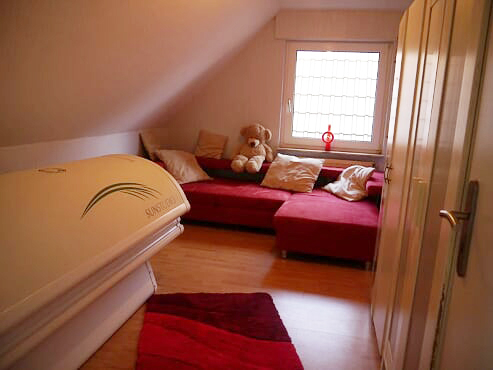 Die Einlieger-/Ferienwohnung im Anbau (über der Garage/Werkstatt) wäre sofort vermietbar. Eine weitere denkbare Nutzungsmöglichkeit wäre z. B. ein Online-/Warenhandel etc. für den man die Einlieger-/Ferienwohnung als Bürofläche nutzen könnte und die Werkstatt als Magazin.