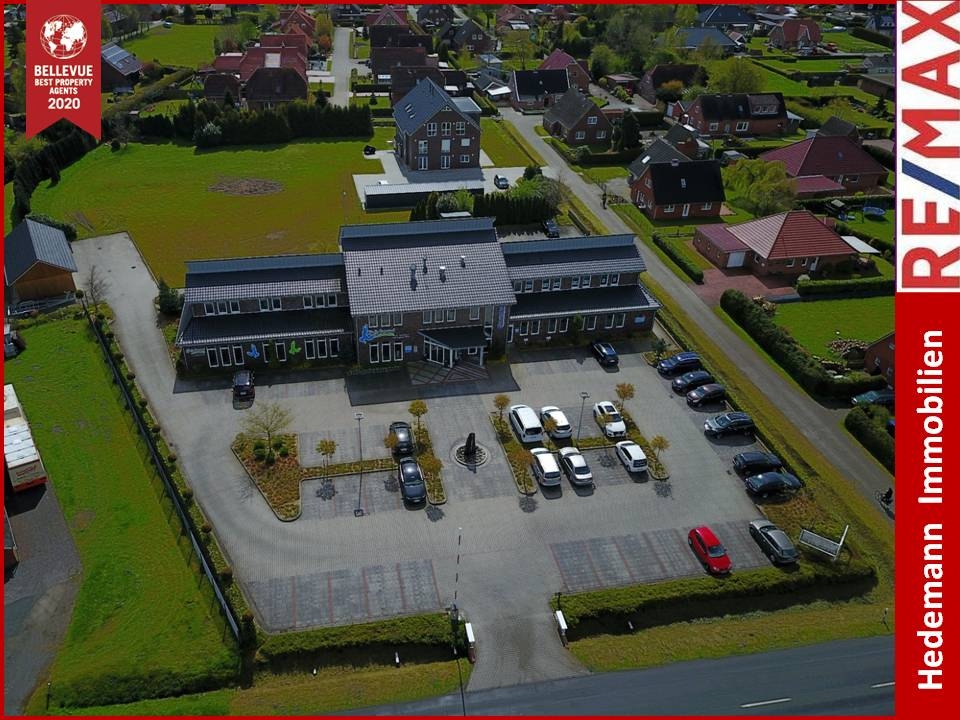 Diese hochwertig erbauten und ausgestatteten Büroflächen befinden sich in Südbrookmerland / OT Moordorf. Die Räumlichkeiten liegen im 1. OG und sind in nahezu neuwertigem Zustand. Die Flächen werden unmöbliert vermietet. Alle Büro- u. Verkehrsflächen (einschl. Teeküche) sind mit hochwertigem Nadelfilzteppich ausgelegt, die Toiletten voll ausgefliest. Der Garten- und Winterdienst sind organisiert. Parkflächen für Kunden gibt es in ausreichender Anzahl.Gesamtfläche z. Vermietung: 75,40 qm