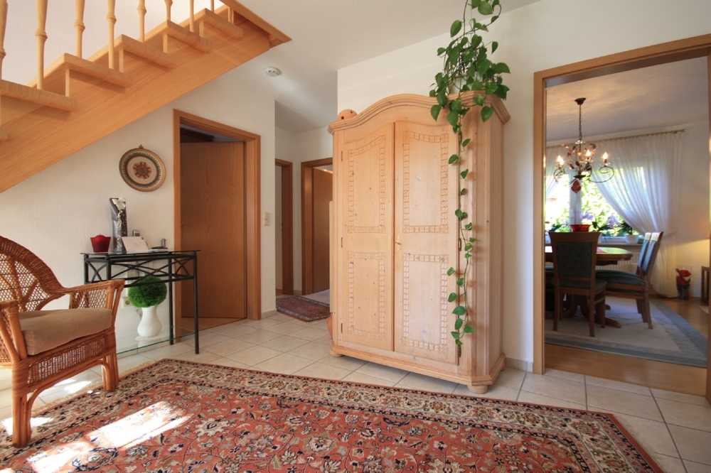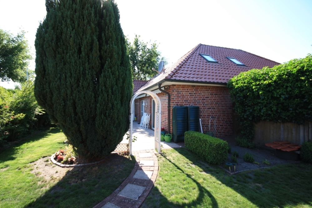 Bei der hier angebotenen Immobilie handelt es sich um ein sehr gepflegtes Einfamilienhaus in ruhiger Lage. Im Erdgeschoss bietet die Immobilie ein lichtdurchflutetes Wohn- und Esszimmer mit Zugang zur Terrasse. Angrenzend befindet sich die Küche mit Einbauküche. Ein Hauswirtschaftsraum, ein hochwertiges Duschbad mit rutschfesten Fliesen, Gäste- und Schlafzimmer vervollständigen den Grundriss im Erdgeschoss.