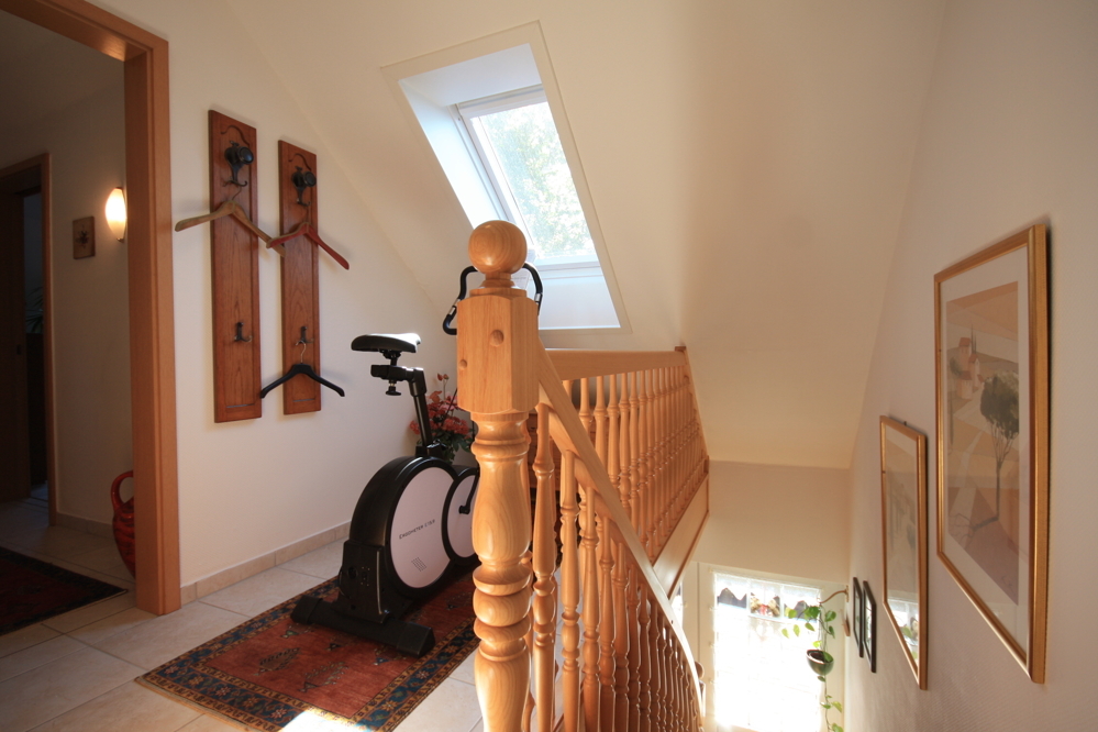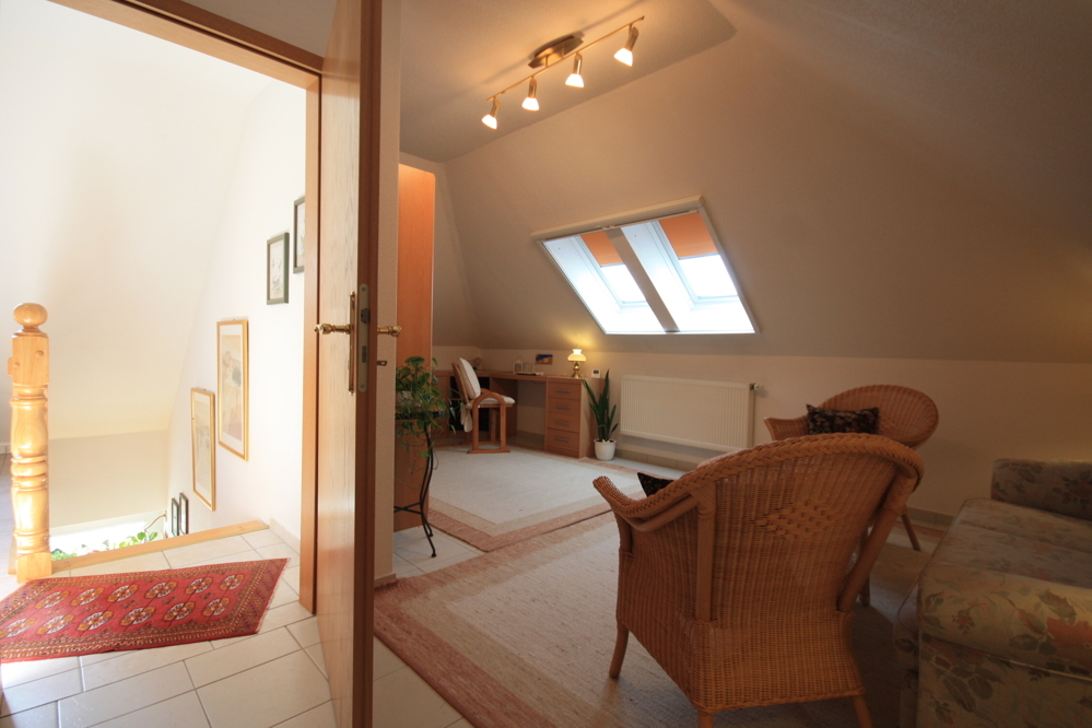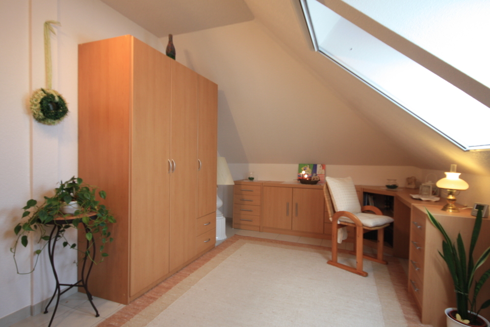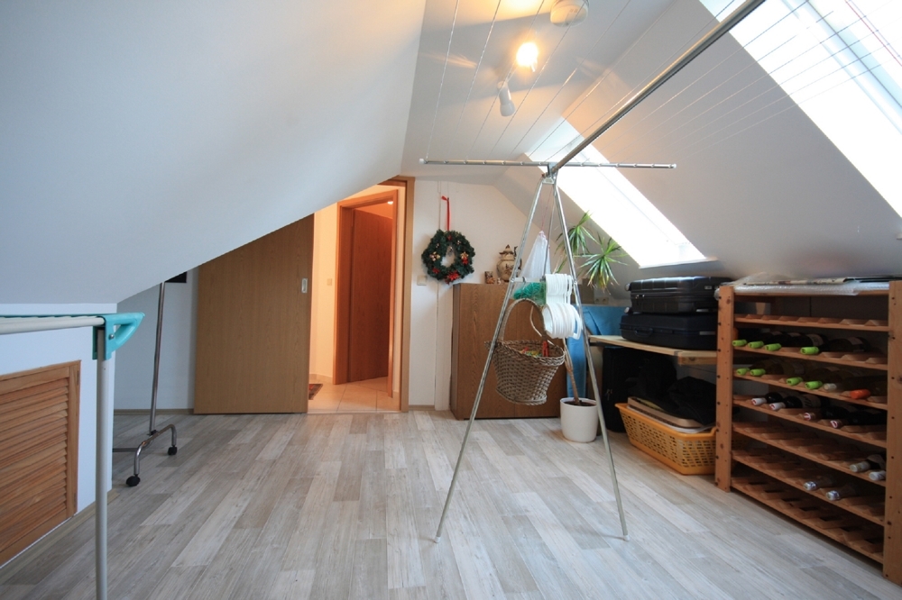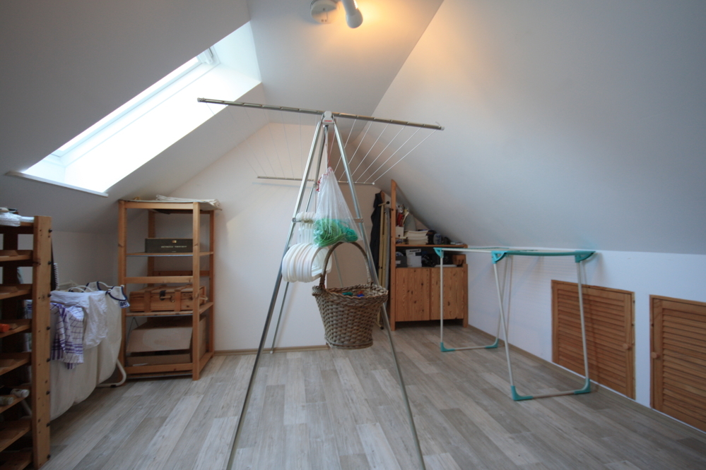 Das Dachgeschoss bietet neben dem Vollbad zwei weitere Räume. Diese lassen sich je nach Bedarf als Büro sowie auch als Gästezimmer nutzen. Das Highlight oben ist der große Boden/Trockenraum für die Wäsche, dieser kann noch mit einem Balkonanbau erweitert werden.