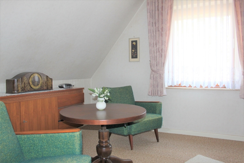 Die Heizung besteht aus Gaseinzelfeuerstätten. Die Fenster sind aus Holz und im oberen Bereich noch in Einzelverglasung.