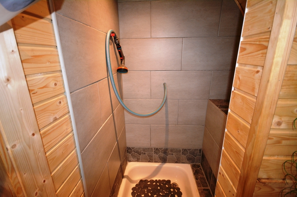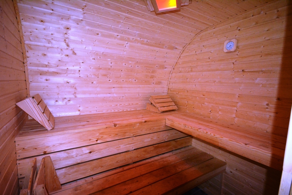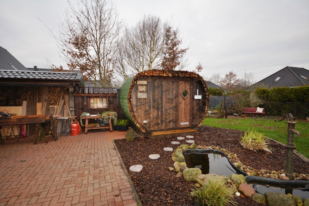 Der Außenbereich bietet die Terrasse, den Garten und die Sauna.