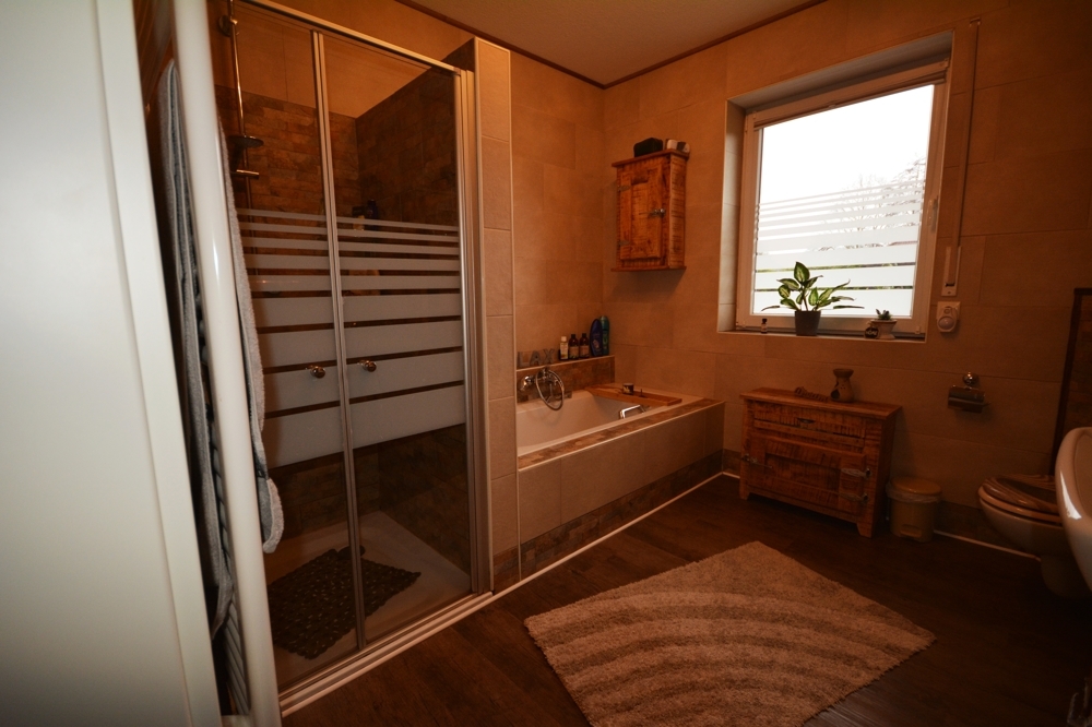 Dieses Ein/Zweifamilienhaus wurde 2005 in massiver Bauweise auf einem ca. 887 m² großen Grundstück erstellt. Er bietet ca. 200 m² Wohnfläche und ca. 37 m² Nutzfläche.Die Erdgeschosswohnung wurde 2014 renoviert. Der Fußboden wurde erneuert, das Bad saniert und neue Türen wurden eingesetzt.