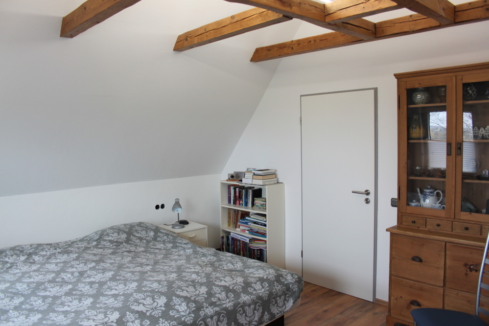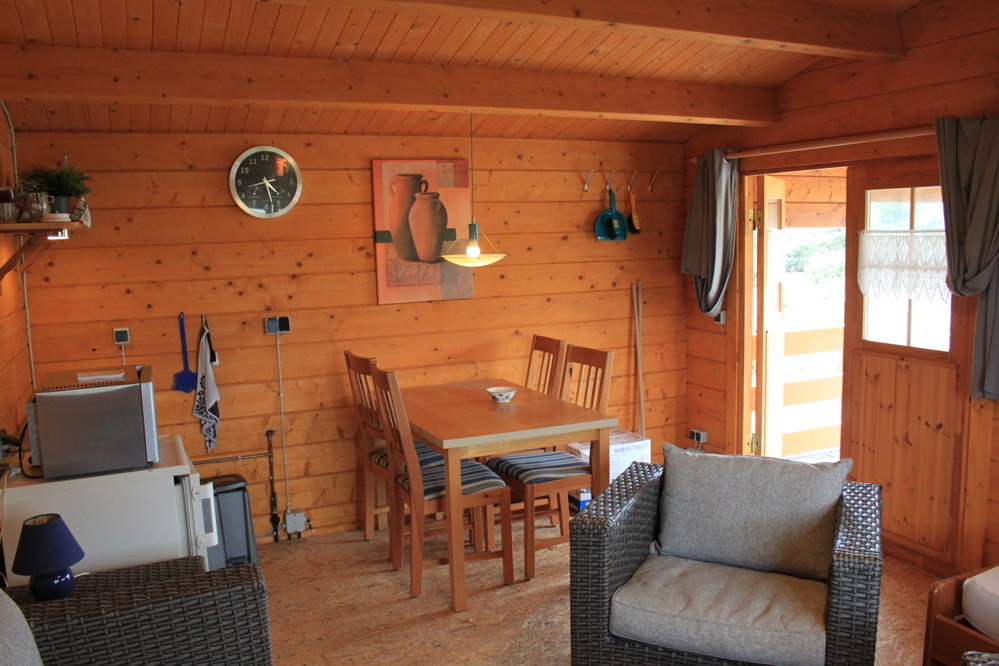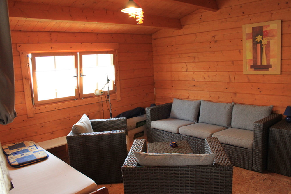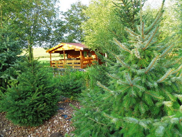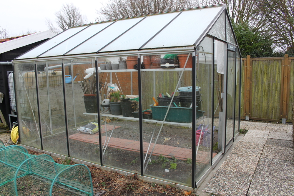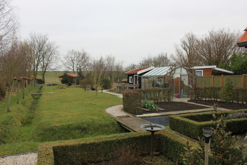 Der hintere Garten ist mit einer Hecke eingefasst und weitgehend vor fremden Blicken geschützt. Schöne, gemütliche Stunden kann man an der Holzhütte mit dem angrenzendem Gartenteich erleben. Auch der Kleingärtner unter Ihnen kann sich im Gewächshaus seine Blütenpracht selbst heranziehen.