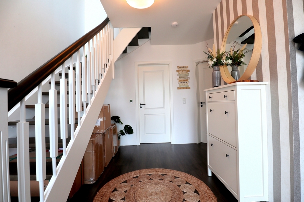 In einer wunderschönen, kleinen Siedlung steht dieses freistehende, neuwertige Einfamilienhaus. Diese Immobilie bietet mit 5 Schlafzimmern und 2 Bädern ausreichend Platz für eine Familie. Die Immobilie wurde 2020 auf dem 724 qm großen Grundstück errichtet. Das Haus teilt sich in folgende Räume auf: