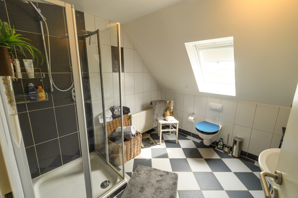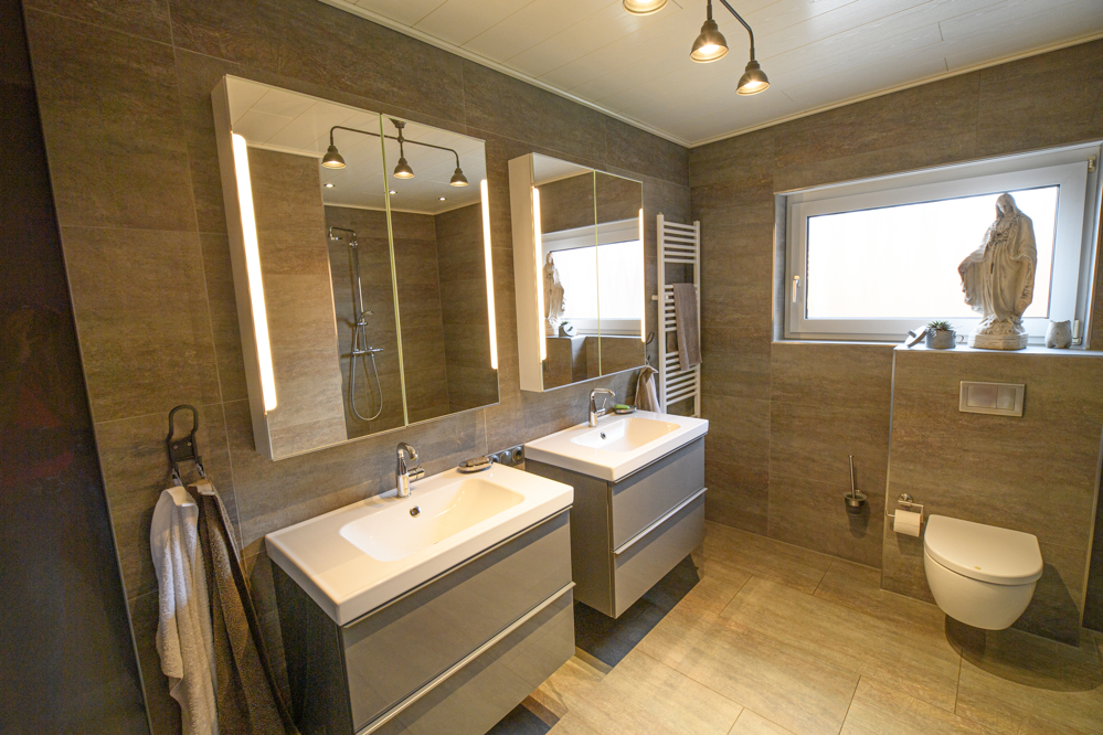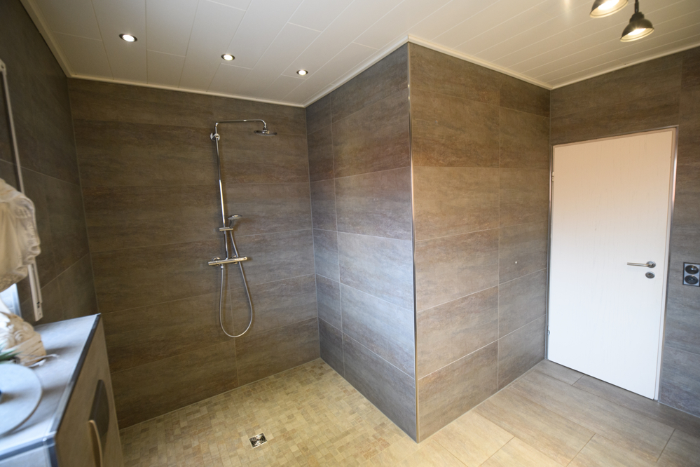 * modernes großes Badezimmer im Erdgeschoss, mit ebenerdiger Dusche