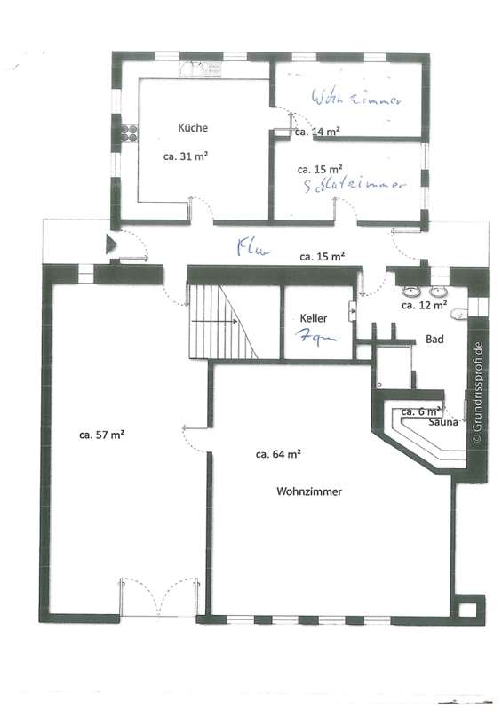 Aufteilung Erdgeschoss:Wohnzimmer: ca. 64qm