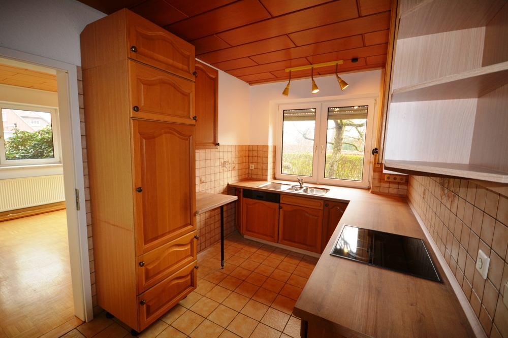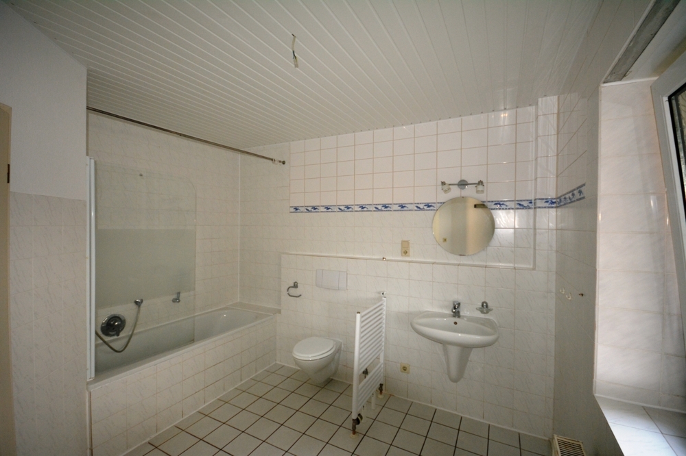 Wohnzimmer, Esszimmer, Küche mit EBK, Bad mit Duschwanne, Diele, Abstellraum, HRW.