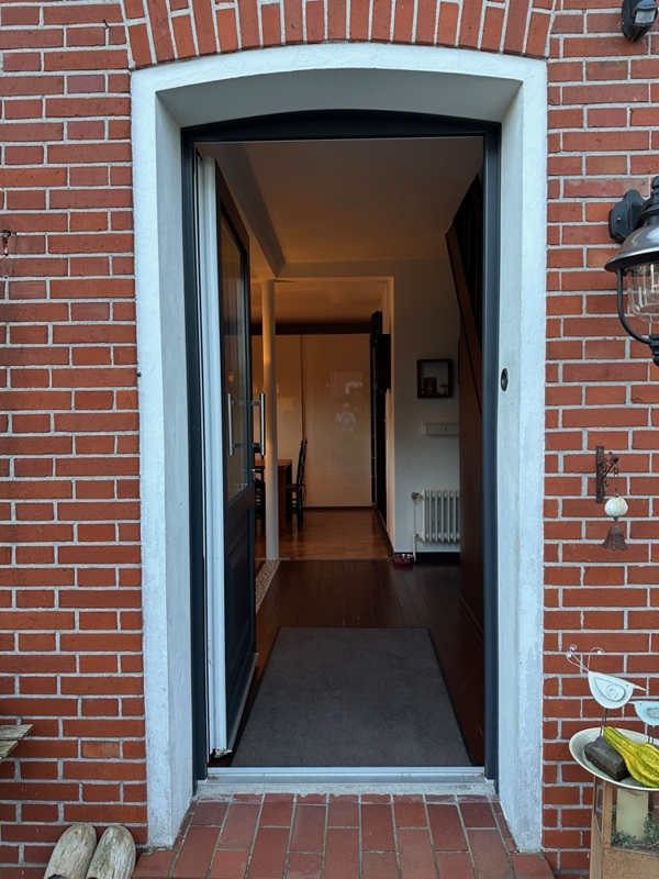 Erneuert wurde ebenso die Eingangstür 2018 und der Kaminofen mit der Kernbohrung für den Edelstahlschornstein 2018.