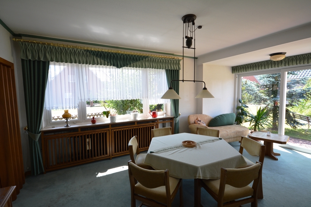 Dieses Einfamilienhaus wurde 1963 in massiver Bauweise auf einem 716 m² großen Grundstück erstellt. Das Objekt bietet ca. 160 m² Wohnfläche und ca. 66 m² Nutzfläche. Das Esszimmer ist durch den nachträglich Anbau eines Glaserkers lichtdurchflutet und bietet einen tollen Blick in den Garten.Raumaufteilung Erdgeschoss: