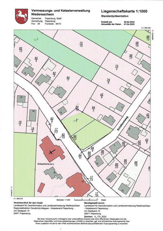 Dieses Baugrundstück befindet sich Zentral in Papenburg. Einkaufsmöglichkeiten sind schnell erreicht. Papenburg hat eine gute Infrastruktur. Ein Krankenhaus, Fachärzte, Apotheken, Kindergärten und Schulen bis hin zu zwei Gymnasien sind vorhanden.