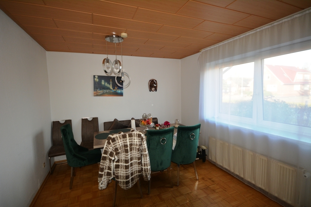 Wohnzimmer, Esszimmer, Küche mit EBK, Bad mit Duschwanne, Diele, Abstellraum, HRW.