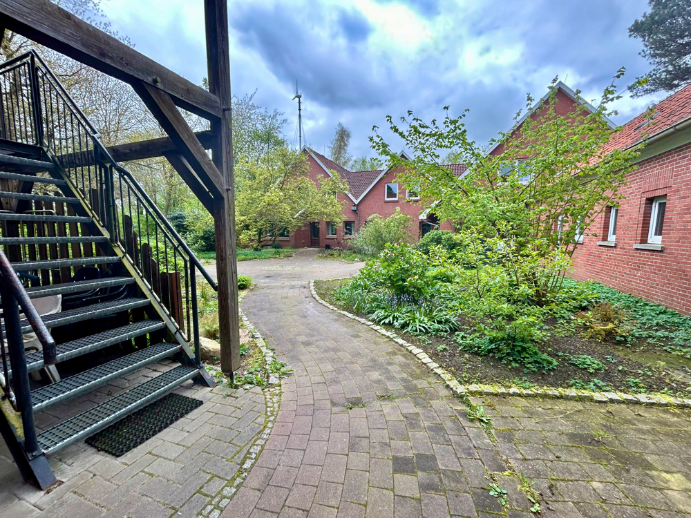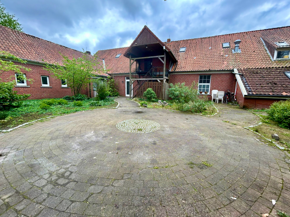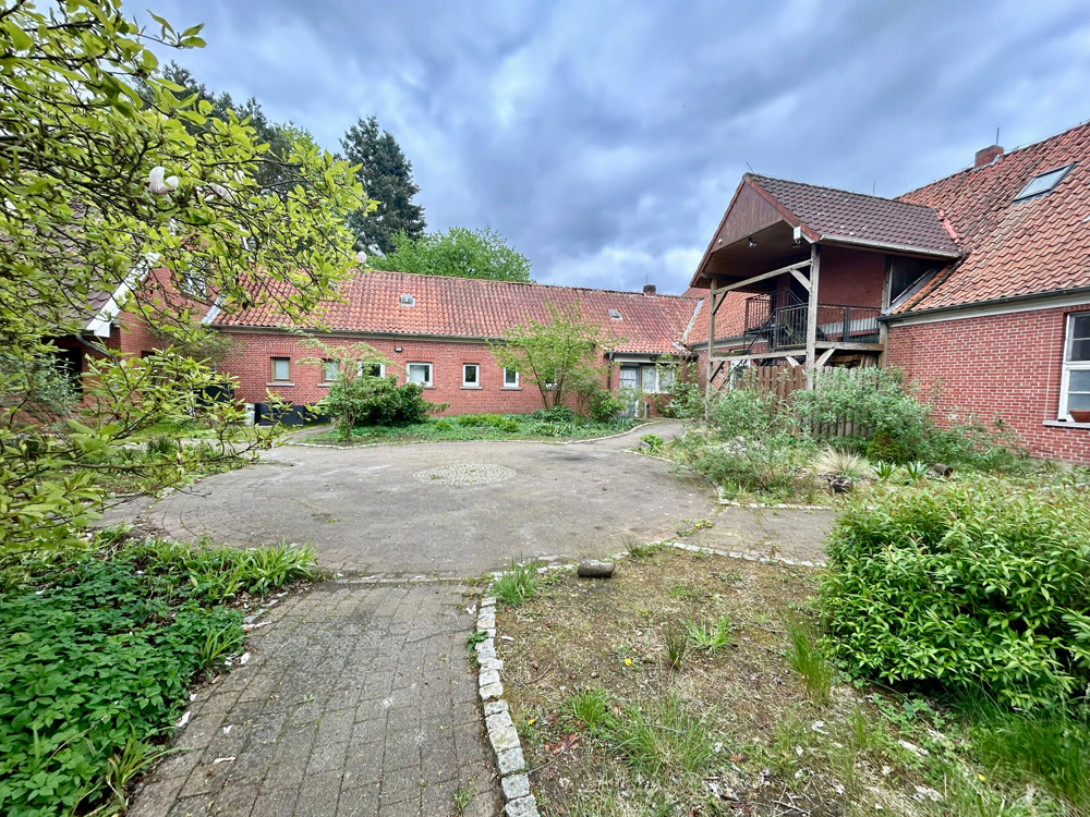 Das Anwesen erstreckt sich über ein ländlich-idyllisches Grundstück mit einem wunderschönen Innenhof und einer großen Mehrzweckwiese. Auf der Mehrzweckwiese gibt es Platz für Sport und Spiel, während die umliegende Natur zu ausgedehnten Spaziergängen oder Radtouren einlädt.