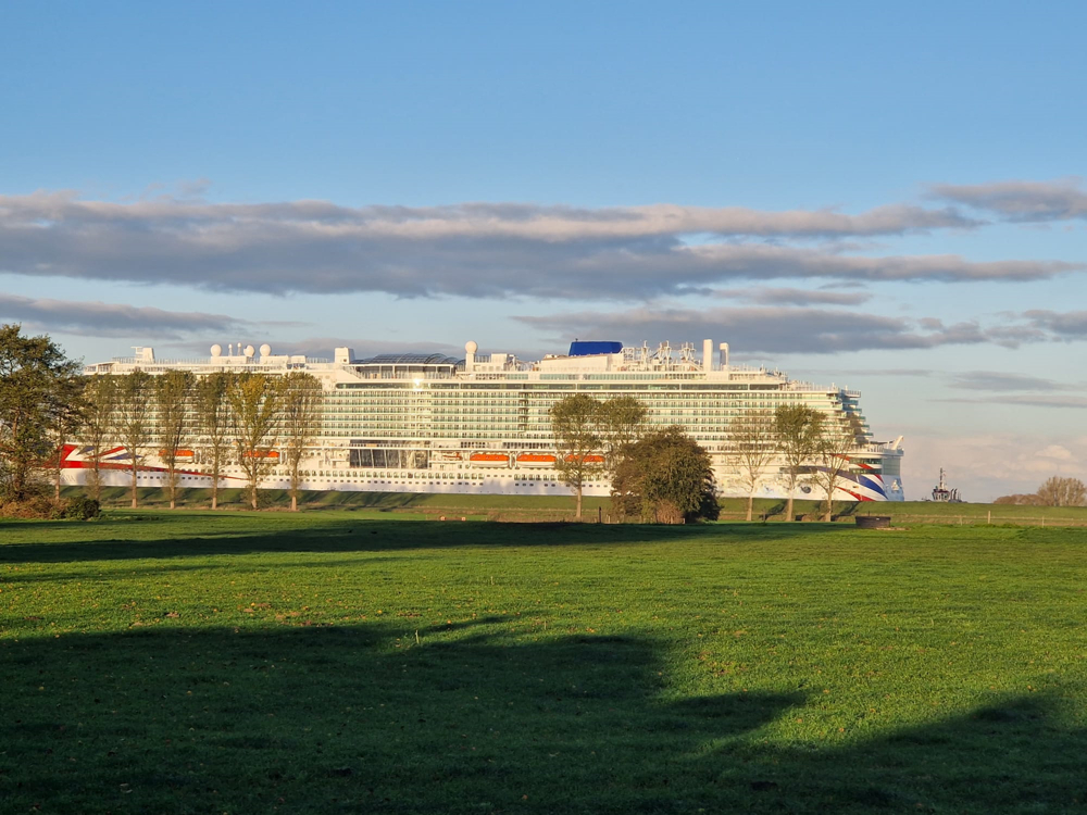 - Schiffe der Meyer Werft können bei Überführung vom Garten aus begutachtet werden