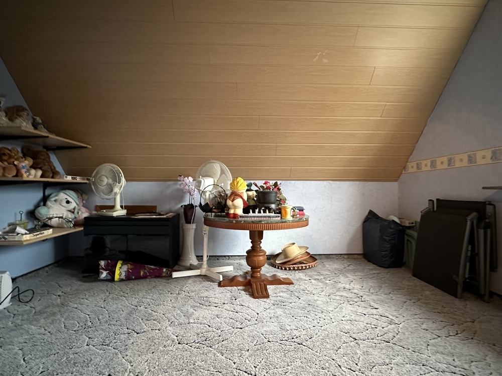 Das Dach wurde 2007 erneuert, das heißt, die Latten, die Folie, die Isolierung und die Dachpfannen sind neu, der Dachstuhl ist geblieben.