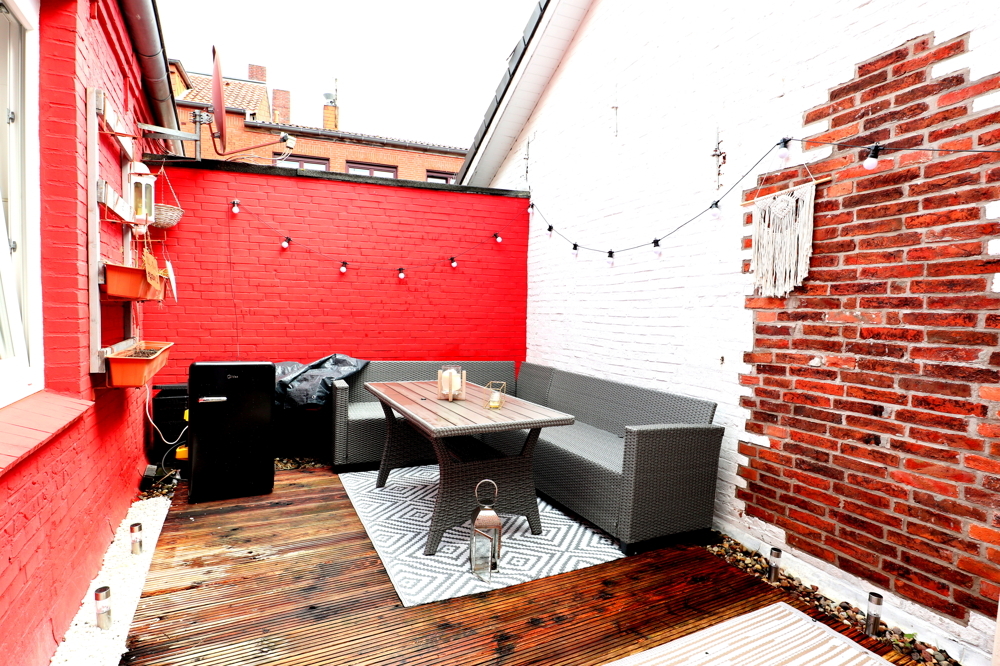 Küche, Wohnzimmer, 3 Schlafzimmer, 2 Bäder, große Dachterrasse