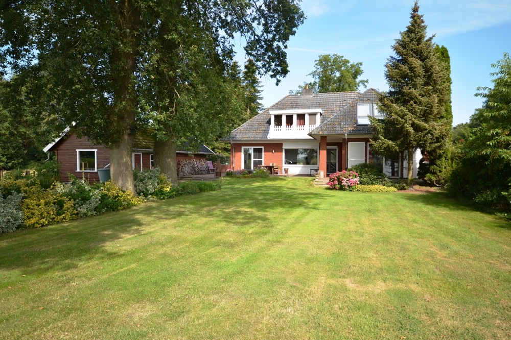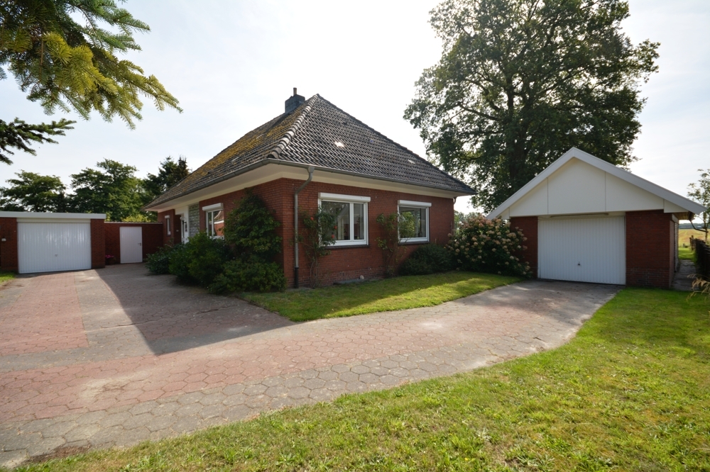 Diese Winkelbungalow wurde 1968 auf einem 2.104 m² großen Grundstück erbaut und im Jahren 1995/1996 saniert. Das Haus bietet ca. 169 m² Wohn- und ca. 108 m² Nutzfläche. In den letzten Jahren wurde das Haus weiterhin renoviert. Terrassentür 2019, Bäder, WC, Bodenfliesen und Dachisolierung 2012, Heizung 2023 (EWE-Plus).Der Außenbereich bietet den Garten, einen großen Vorgarten, 2 Garagen und eine Werkstatt.