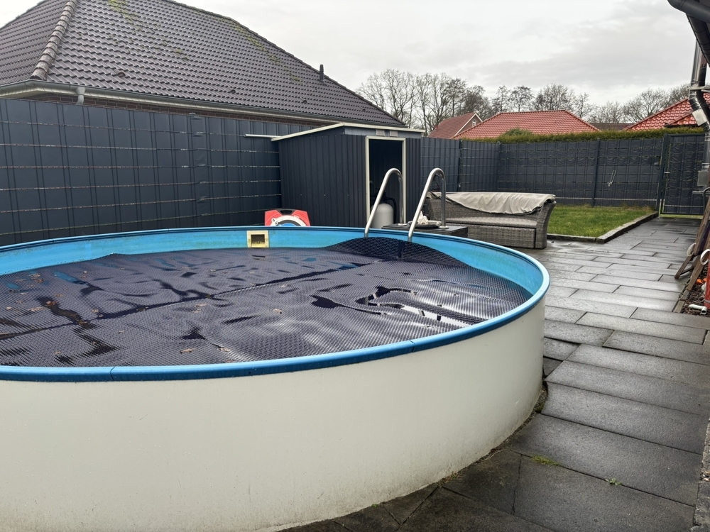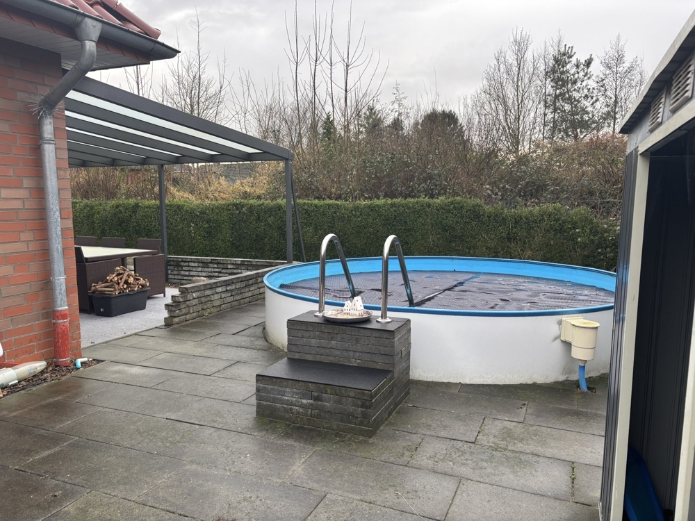 Auch im Außenbereich wurde ständig investiert somit finden wir hier eine geräumige Terrassenüberdachung, sowie ein Gartenhaus das im Jahr 2021 erbaut wurde, dieses ist aus Metall und somit sehr robust und pflegeleicht. Ein zusätzliches Highlight ist der beheizte Außenpool der mit einer separaten Wärmepumpe beheizt wird.