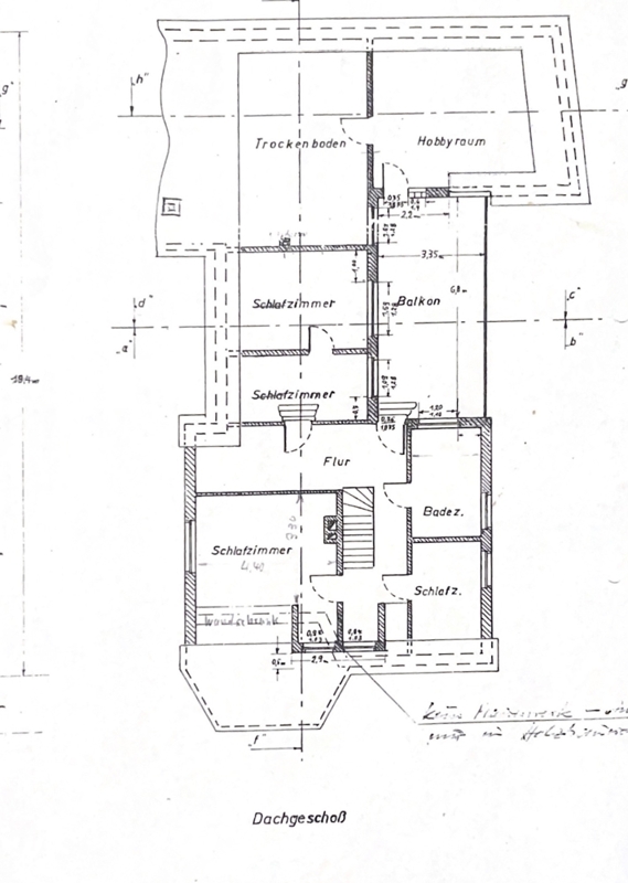 teilt sich in Erd- und Dachgeschoss auf. Ein Balkon, der von beiden Wohneinheiten aus passierbar ist, wurde ebenfalls 1962 angebaut.