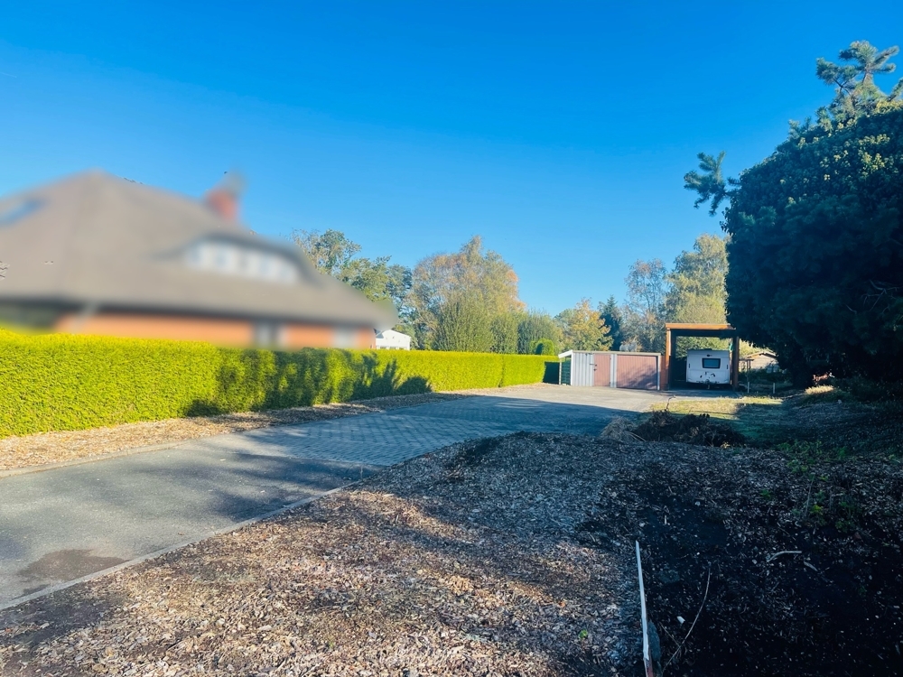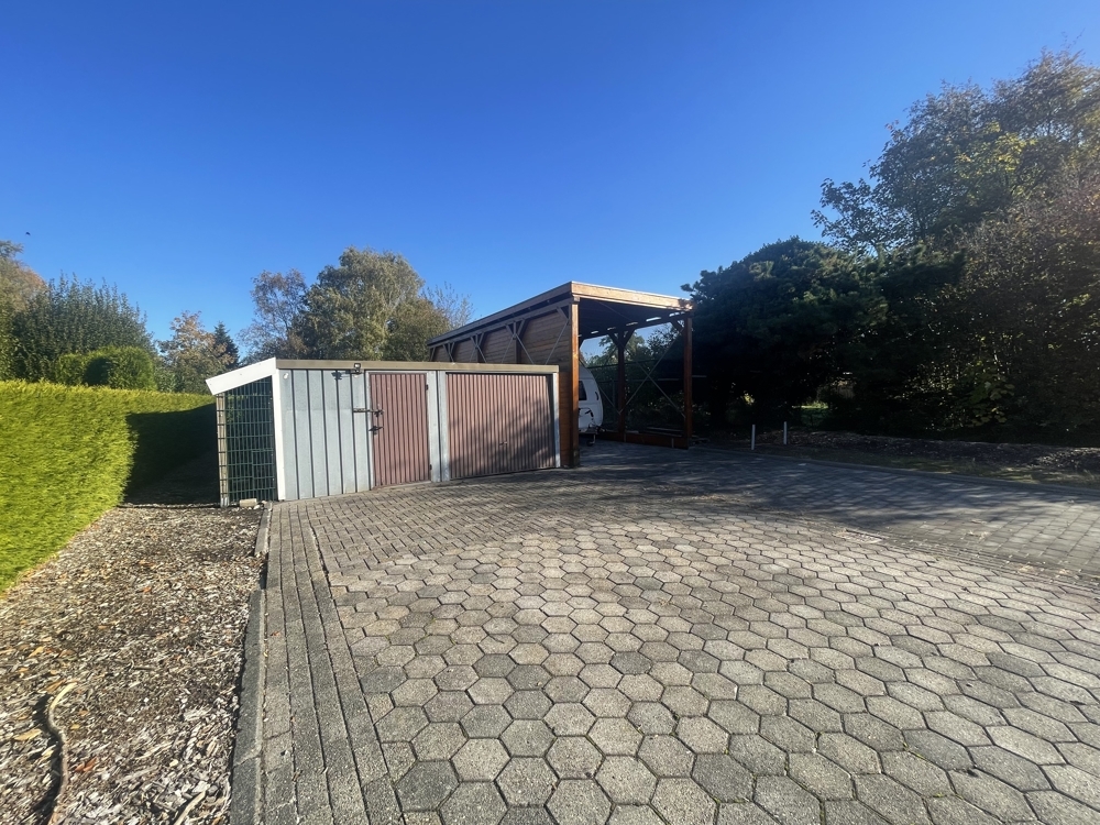 Das Grundstück ist größtenteils gepflastert. Der aufstehendeCarport wird bei Verkauf abgebaut. Die beiden Garagen können bei Bedarf übernommen werden.