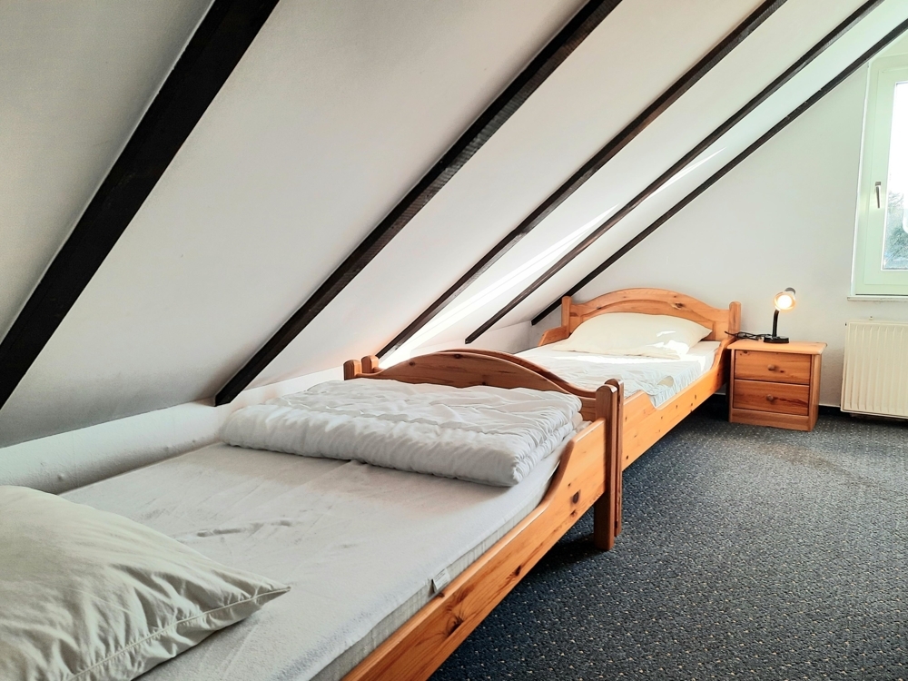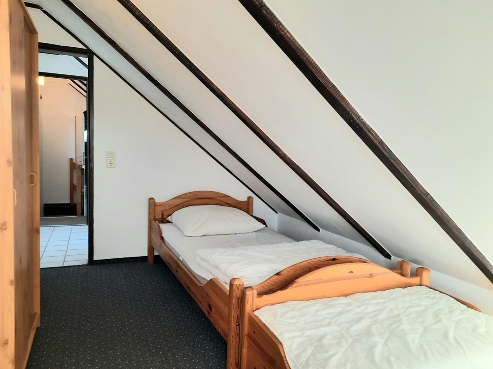 Dieses Wohnhaus mit Anbau wurde im Jahre 1987 mit entsprechend hochwertigen Materialien erbaut und bezogen. Das Hauptgebäude beherbergt zwei Ferienwohnungen zu ebener Erde, ergo parterre. Im ehem. Garagengebäude (Anbau) ist eine weitere ca. 40qm große Ferienwohnung zu ebener Erde. Einer der drei vermietbaren Ferienwohnungen befindet sich auf zwei Ebenen. Hier befinden sich zwei großzügige Schlafräume und ein Flur mit Garderobe. Die Eigentümer- bzw. Betreiberwohnung, befindet sich im Anbau über den ehem. Garagen und verfügt über eine vollüberdachte Loggia, die nach Norden ausgerichtet ist und über einen eigenen Eingangsbereich verfügt, in dem sich auch die neue Heizungsanlage befindet.