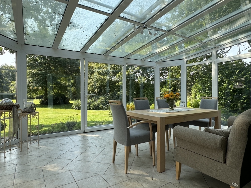 - Wintergarten beheizt + Beschattung (Markilux) & Wind-/Regenwächter