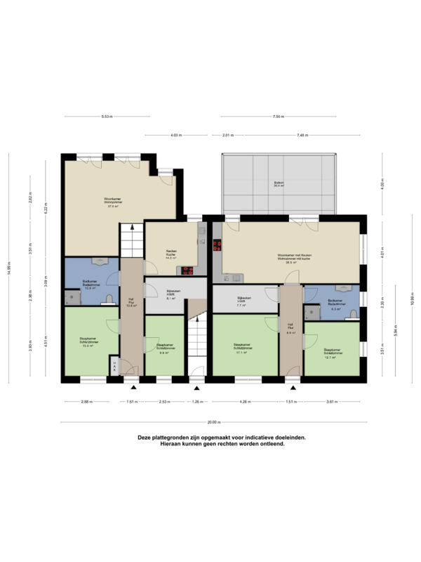 - Badezimmer rechts: 8,05 m² (Doppelwaschbecken, Dusche, WC)