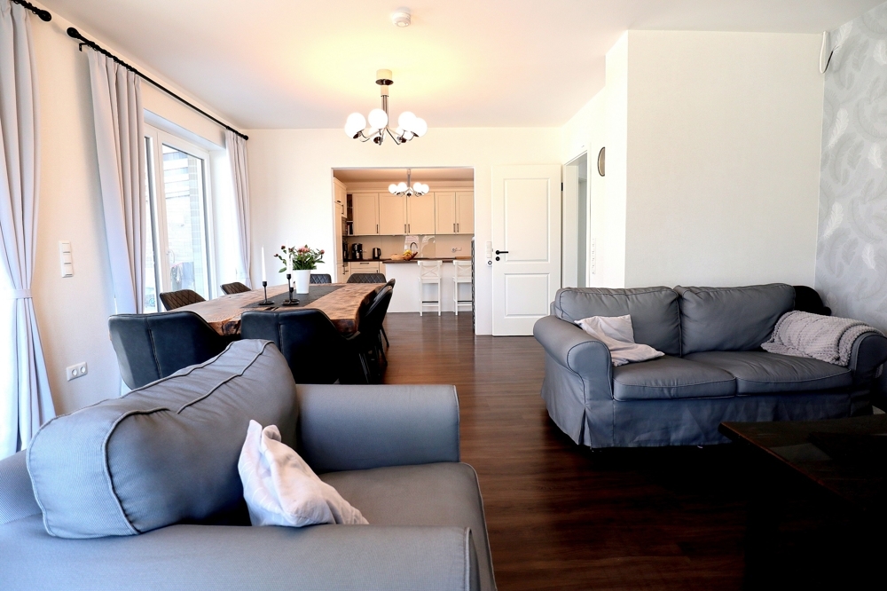 In einer wunderschönen, kleinen Siedlung steht dieses freistehende, neuwertige Einfamilienhaus. Diese Immobilie bietet mit 5 Schlafzimmern und 2 Bädern ausreichend Platz für eine Familie. Die Immobilie wurde 2020 auf dem 724 qm großen Grundstück errichtet. Das Haus teilt sich in folgende Räume auf:Erdgeschoss: