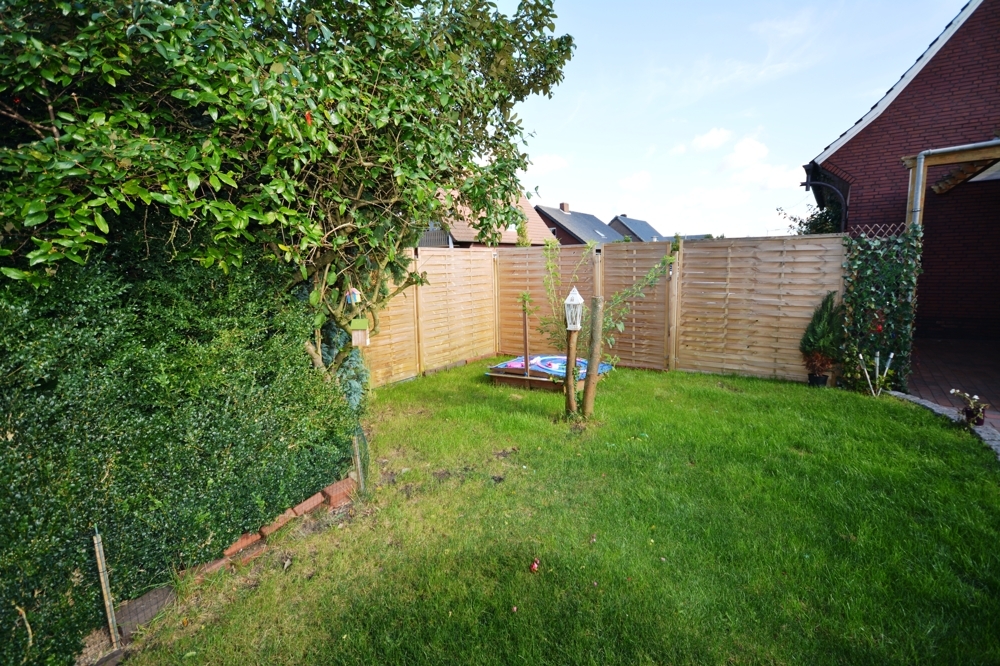 Der Außenbereich bietet den liebevoll angelegten Garten, eine Gartenhütte, eine große Dachterrasse, die überdachte Terrasse und die Garage.