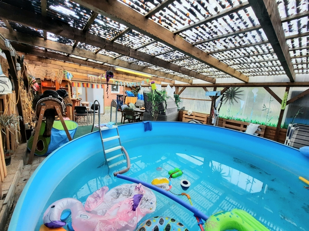 Pool-Anlage (beheizbar) voll überdacht mit Sitzgelegenheiten, Dach in 2020 erneuert